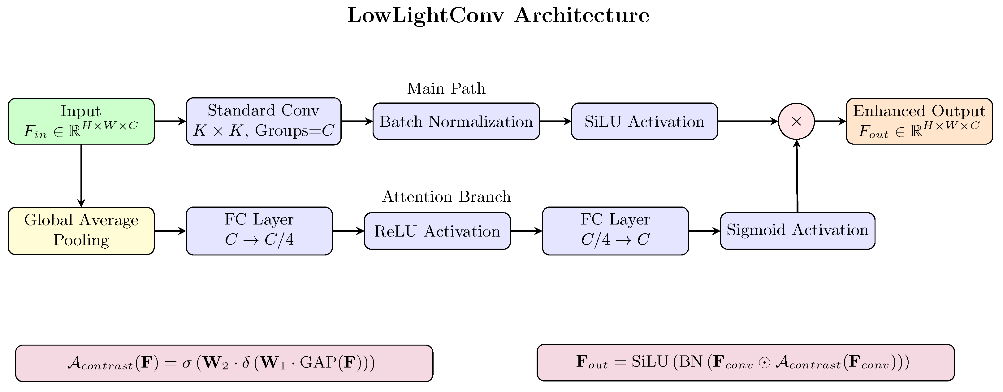 Challenges in Low-Light Industrial Environments:Recognizing human actions in low-light industrial environments remains a significant challenge for safety-critical applications in power systems. Underground electrical vaults, smart power stations, and nighttime outdoor monitoring scenarios often suffer from severe illumination degradation, leading to poor visibility, low contrast, and high noise.