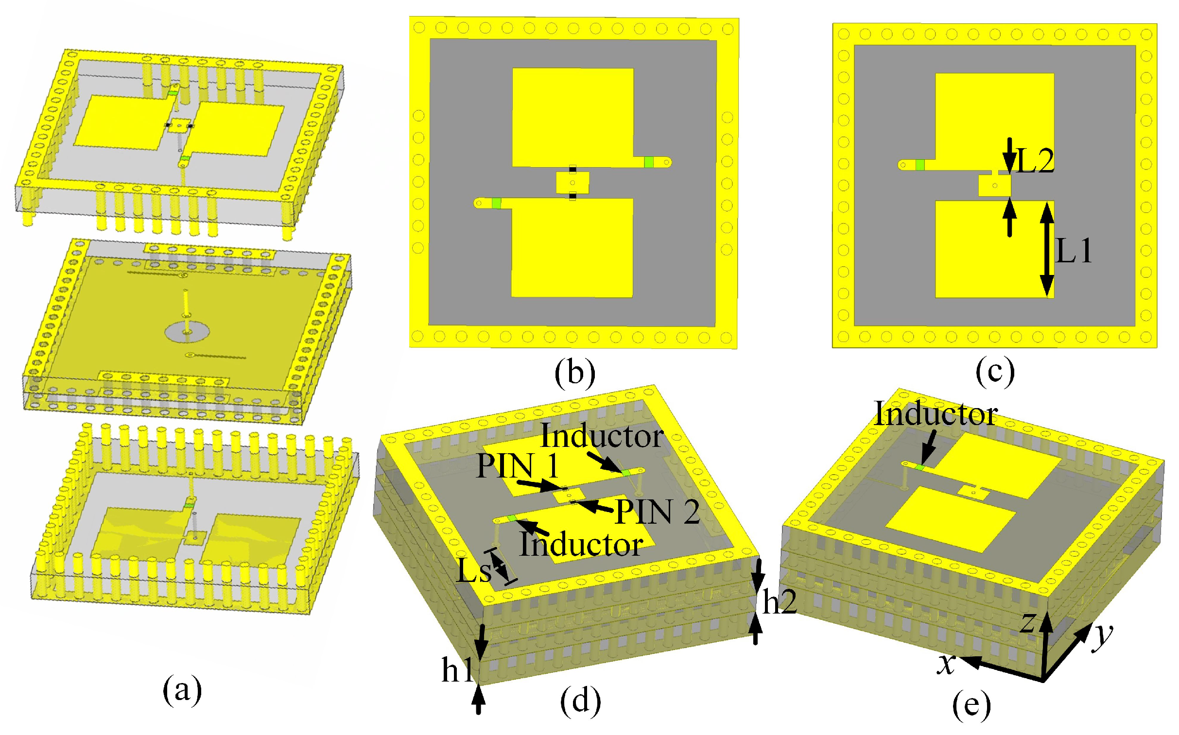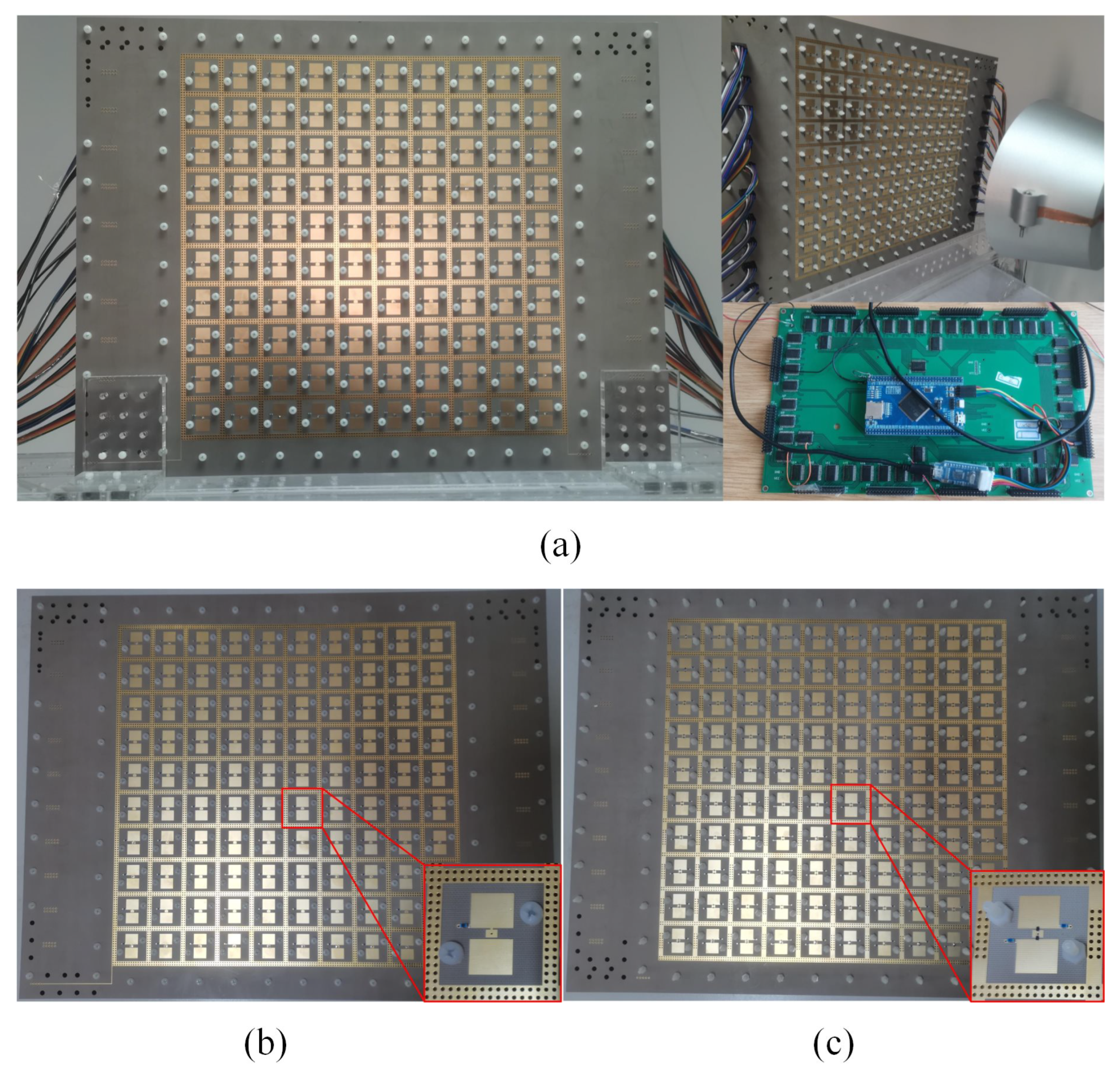 - Wang, M.; Xu, S.; Yang, F.; Hu, N.; Xie, W.; Chen, Z. A Novel 1-Bit Reconfigurable Transmitarray Antenna Using a C-Shaped Probe-Fed Patch Element with Broadened Bandwidth and Enhanced Efficiency. IEEE Access 2020, 8, 120124–120133. [Google Scholar] [CrossRef]