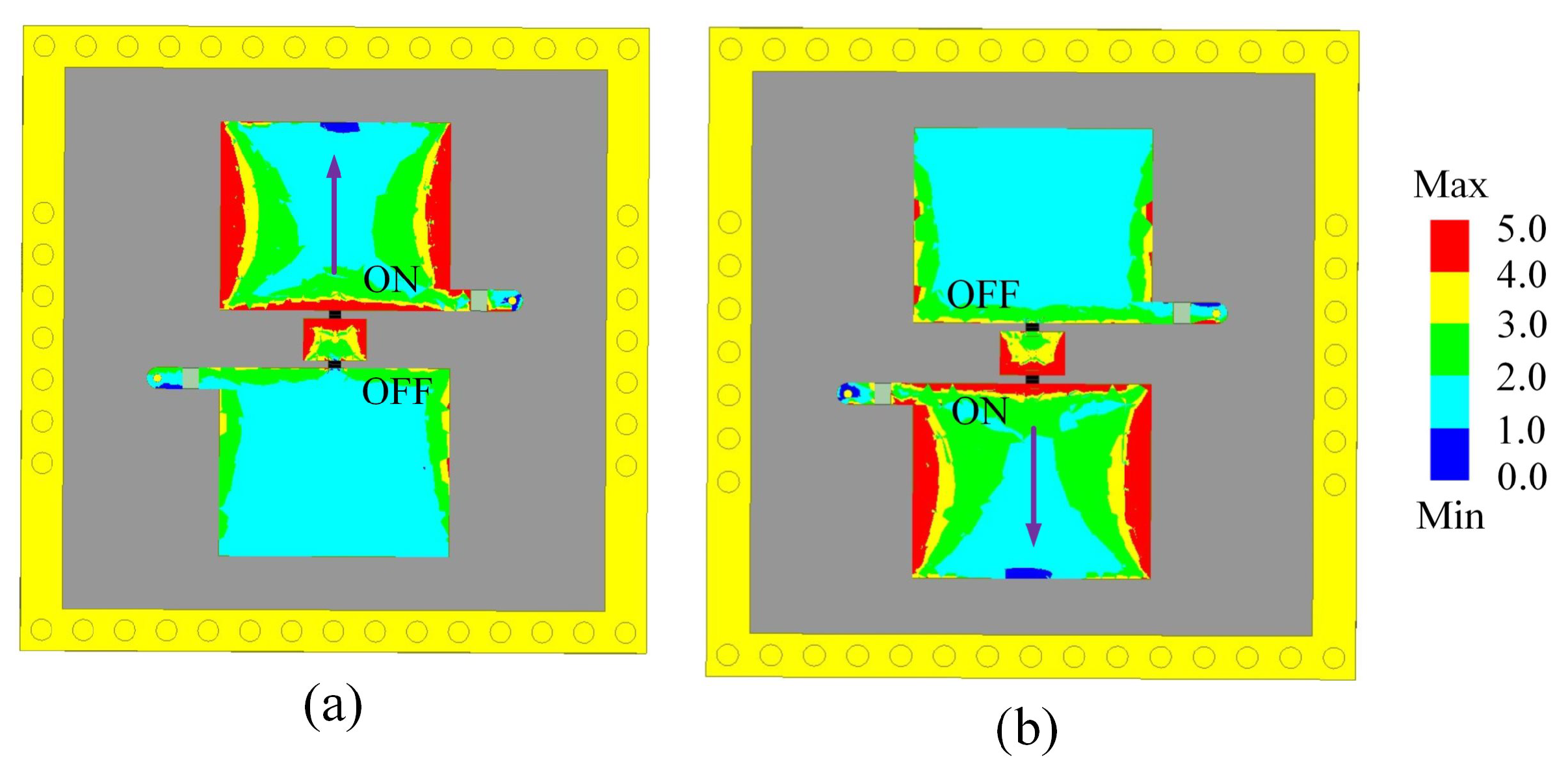- Zhang, H.; Chen, X.; Wang, Z.; Ge, Y.; Pu, J. A 1-Bit Electronically Reconfigurable Reflectarray Antenna in X Band. IEEE Access 2019, 7, 66567–66575. [Google Scholar] [CrossRef]