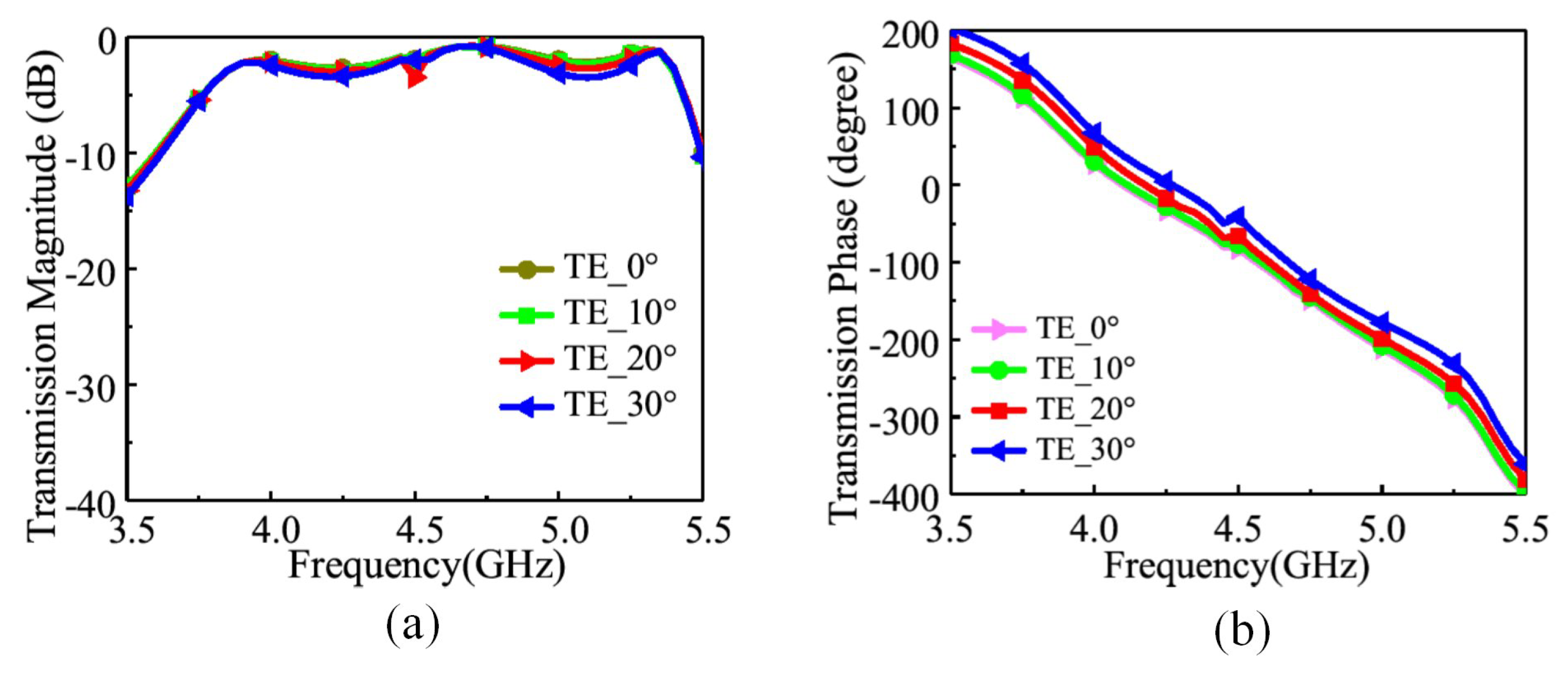 - Wang, Y.; Xu, S.; Yang, F.; Li, M. A Novel 1 Bit Wide Angle Beam Scanning Reconfigurable Transmitarray Antenna Using an Equivalent Magnetic Dipole Element. IEEE Trans. Antennas Propag. 2020, 68, 5691–5695. [Google Scholar] [CrossRef]