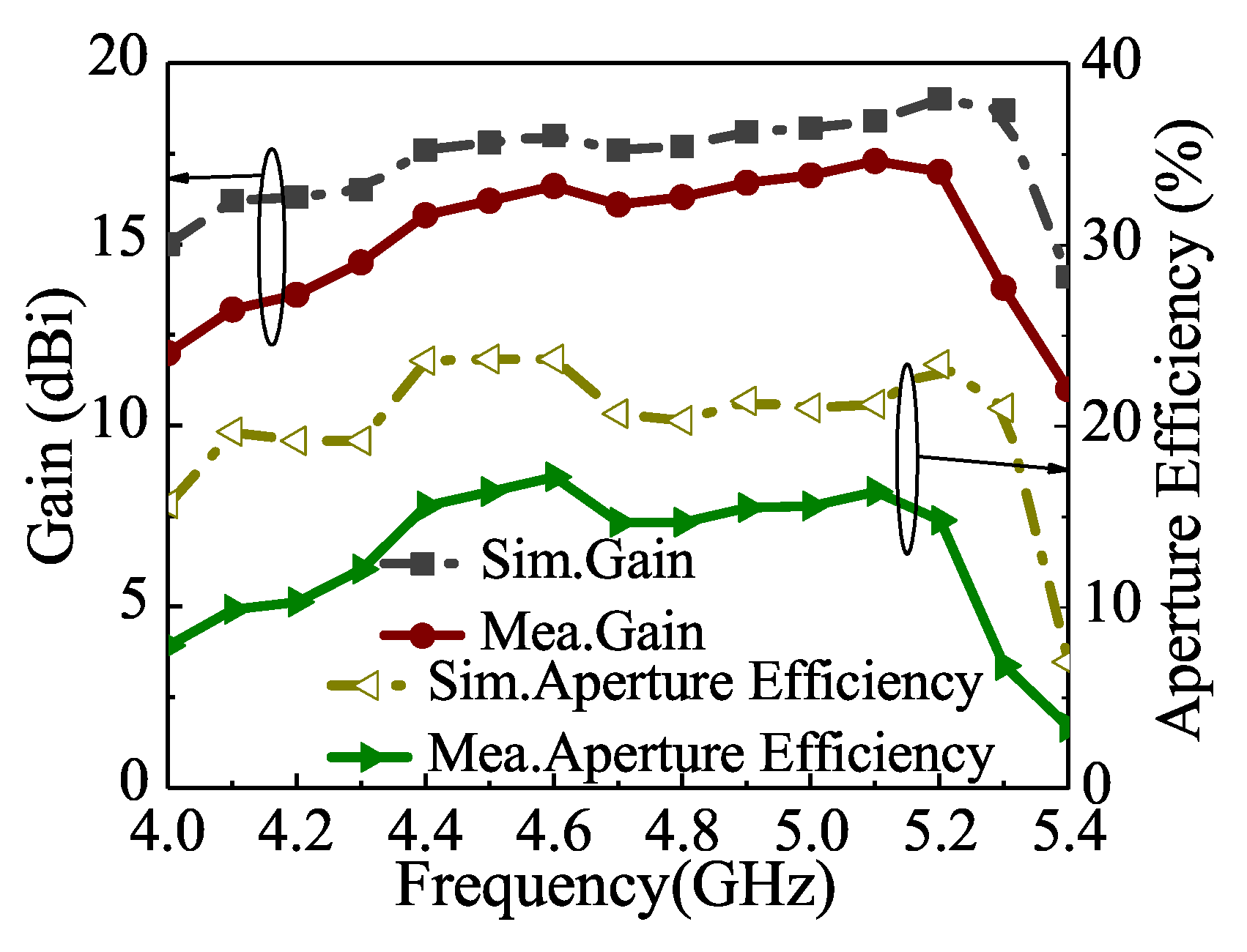 | Ref. No. | Freq. (GHz) | Array Size ( × ) | Gain (dBi) | Transmission BW | Aperture eff. | 3 dB Gain BW |