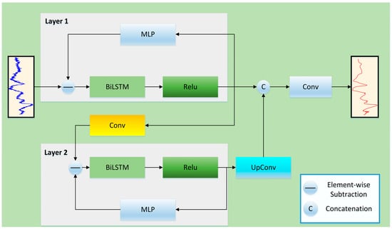 To further enhance the model’s ability to capture noise patterns, we introduce a residual iterative mechanism based on MLP and LSTM. In each iteration, the current feature is first passed through an MLP network to generate a new noise estimation, which is then fed into a BiLSTM to obtain the corresponding dynamic compensation term :