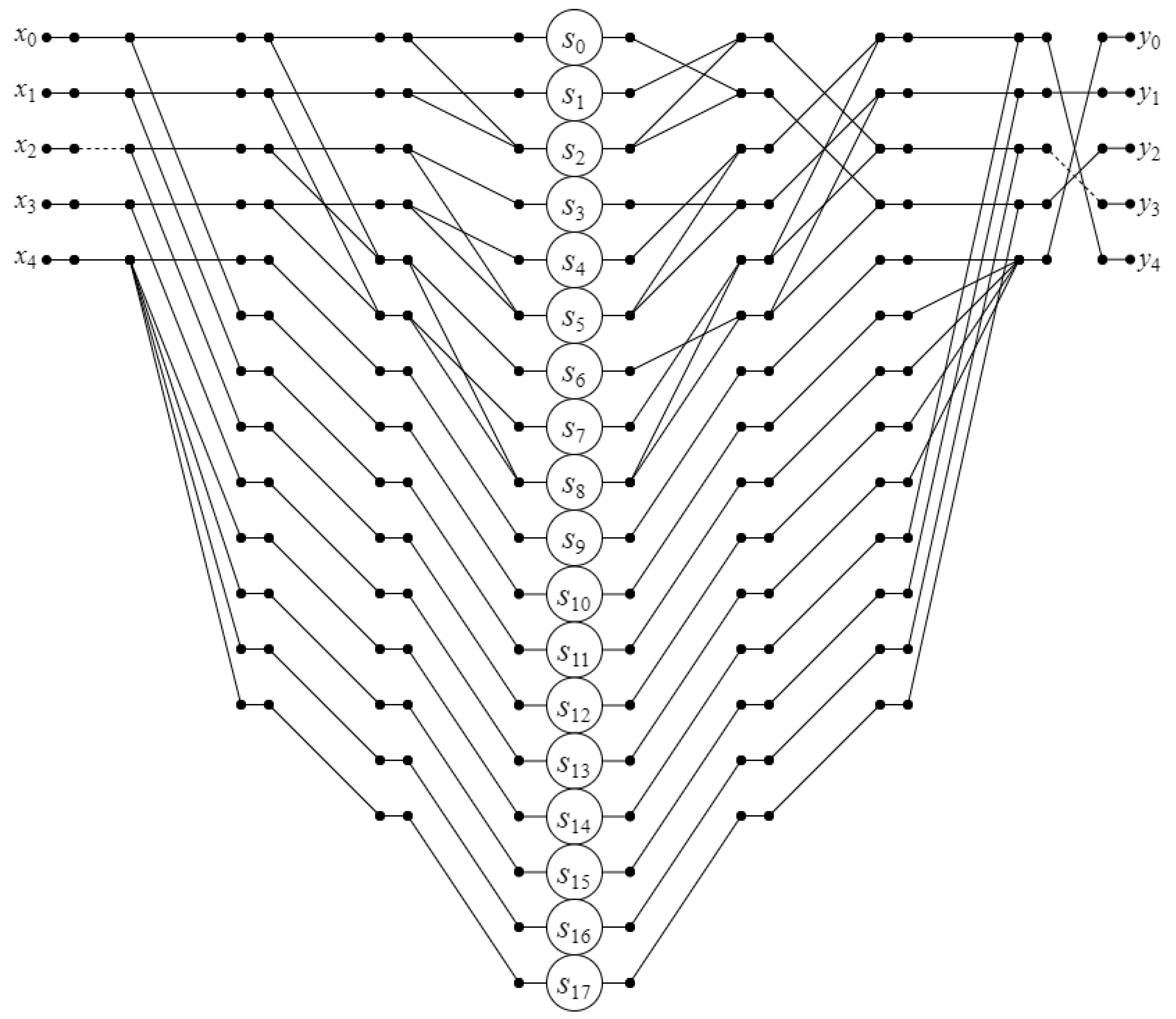 29]. These repetitions allow multiple multiplications by coefficients of the same absolute value within a basis row to be combined into a single multiplication. For instance, [