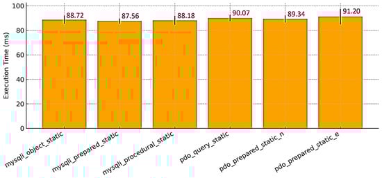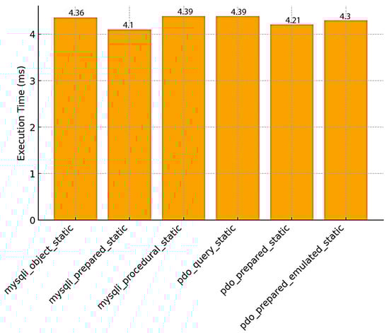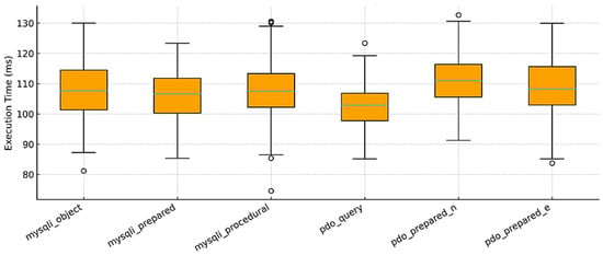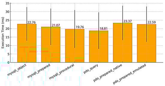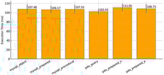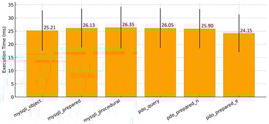 - Westergren, J. PDO vs. MySQLi Speed Comparison. 2017. Available online: https://www.jimwestergren.com/pdo-versus-mysqli (accessed on 14 September 2025).