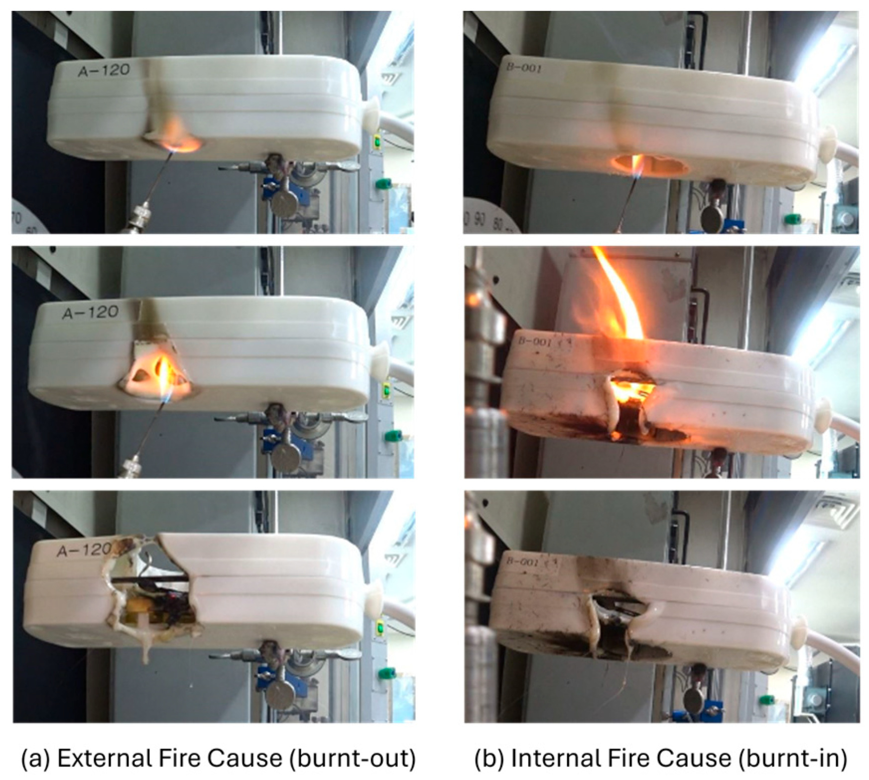 - Kim, D.; Kim, S.; Kim, G. Analysis of Thermal Characteristics of Electrical Outlets Due to Overcurrent. J. Korean Soc. Saf. 2019, 34, 8–14. [Google Scholar]