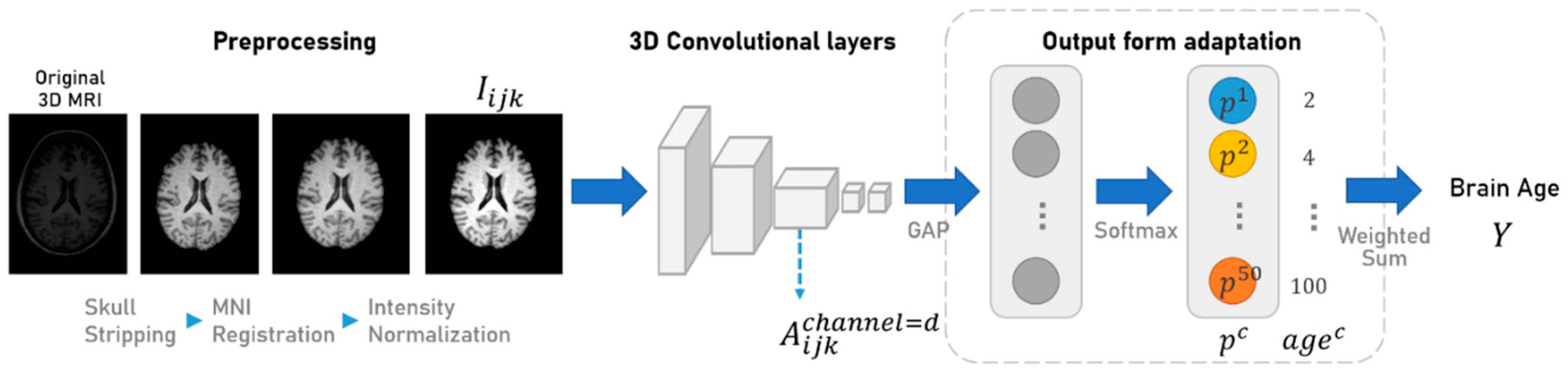 - Gong, W.; Beckmann, C.F.; Vedaldi, A.; Smith, S.M.; Peng, H. Optimising a simple fully convolutional network for accurate brain age prediction in the PAC 2019 challenge. Front. Psychiatry 2021, 12, 627996. [Google Scholar] [CrossRef]