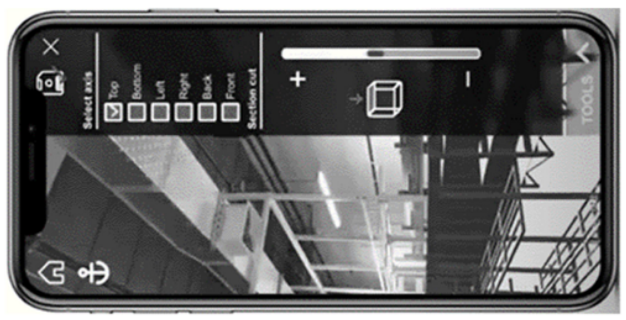 25], with the aim of visualizing 3D models in real environments for inspections, plan verifications, and building presentations, the authors use and present technologies such as AR, BIM, Construction 4.0, OpenBIM (see