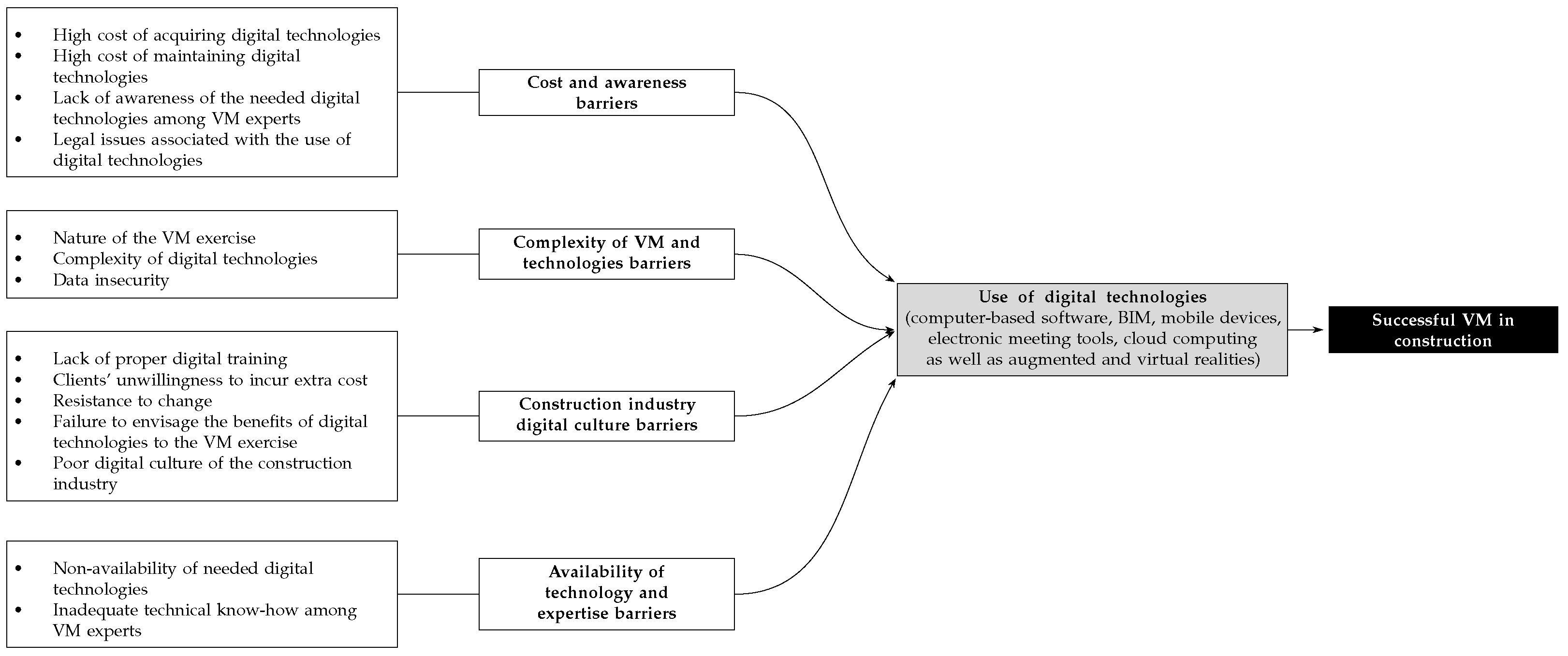 132]. This encompasses mostly resistance to change, fear of new technologies, and fear of perceived complexity. The construction sector also presents barriers from withing management levels: the sector is traditional and reluctant to adopt new technologies [