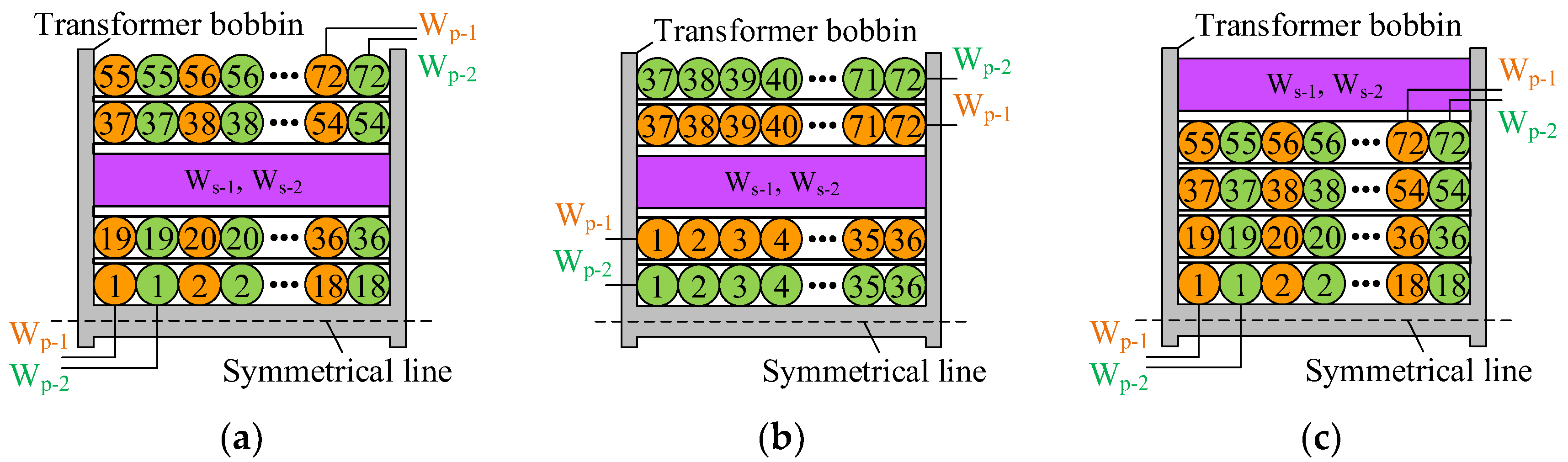 In the integrated transformer (T), there are N primary windings and n secondary windings, so the influences of the coupling relationships among these windings should be clarified. On this basis, the layouts of these windings can be determined in the design process. In previous investigations, the influences of the coupling relationships among primary windings have been clarified, as well as the coupling relationships among secondary windings. However, the influences of the coupling relationships between primary and secondary windings have not been clarified.
