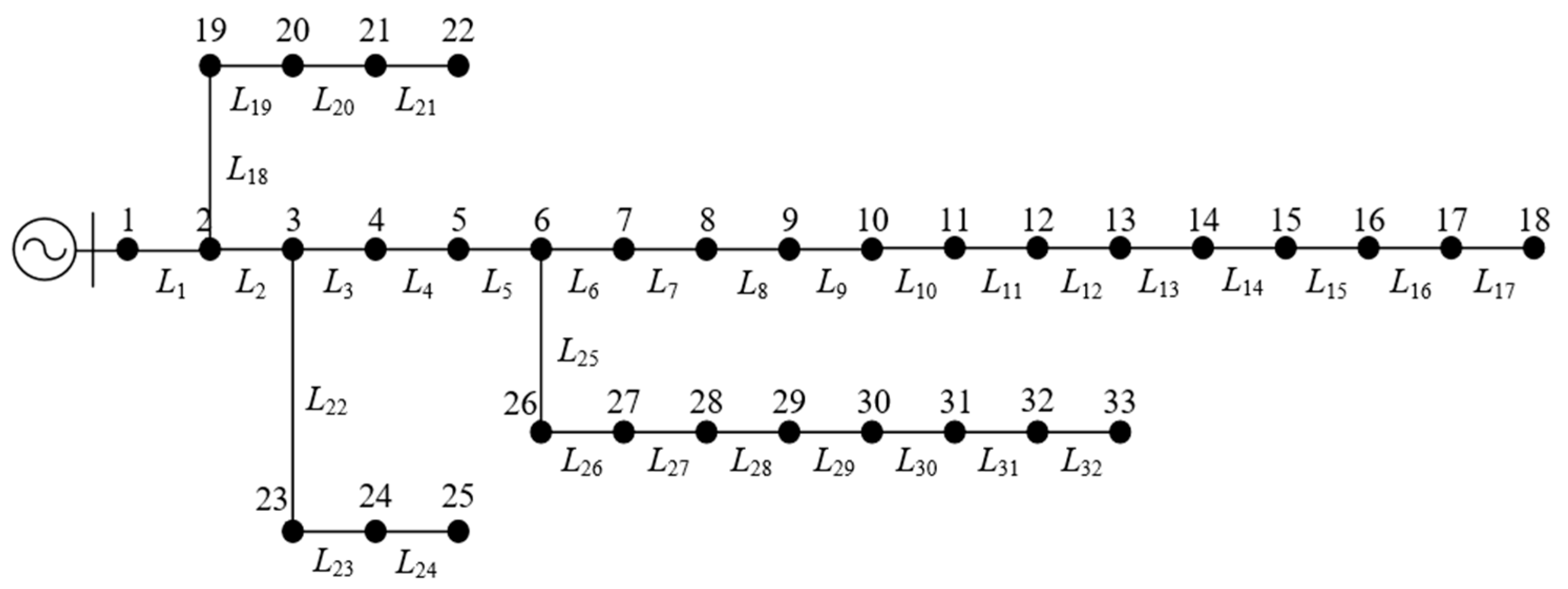 Distribution network of IEEE33-node system.