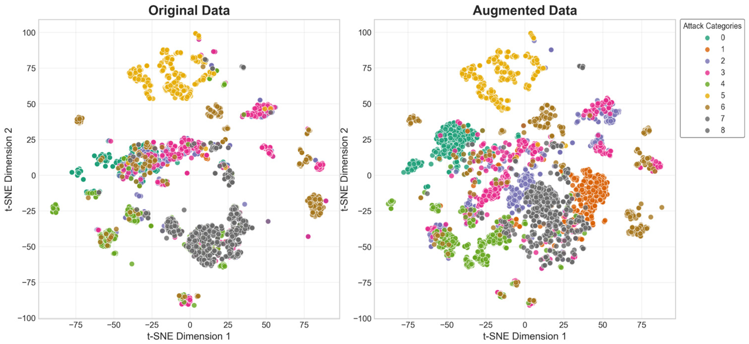 13] also combined SMOTE with Random Forest (RF) to detect various network attacks, achieving promising results. However, when generating synthetic samples, the SMOTE algorithm only considers local information among minority class samples while ignoring the distribution of the majority class. This can lead to the generation of samples within majority class regions, creating noisy samples or increasing class overlap, potentially degrading classification performance.