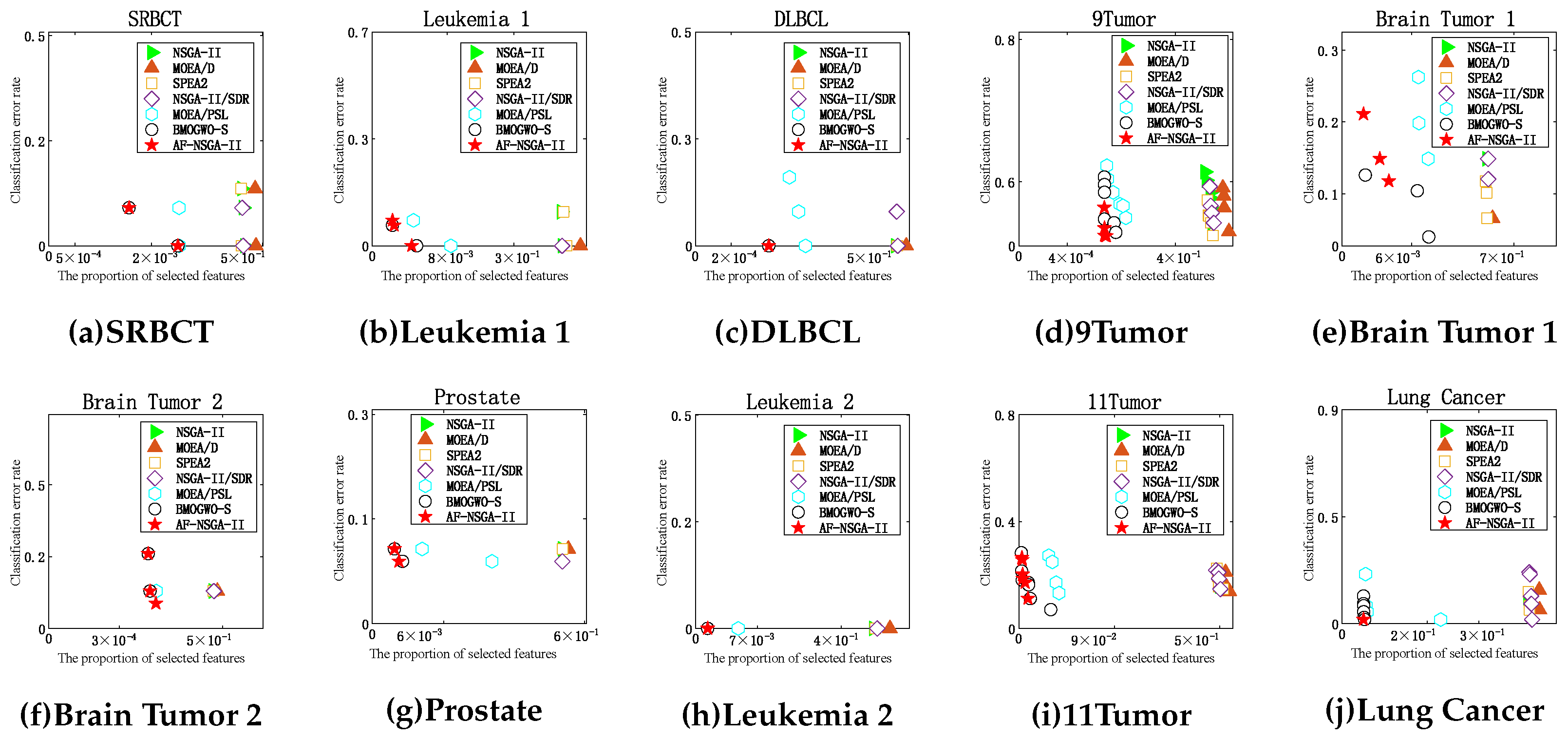 - Xu, H.; Xue, B.; Zhang, M. A duplication analysis-based evolutionary algorithm for biobjective feature selection. IEEE Trans. Evol. Comput. 2020, 25, 205–218. [Google Scholar] [CrossRef]