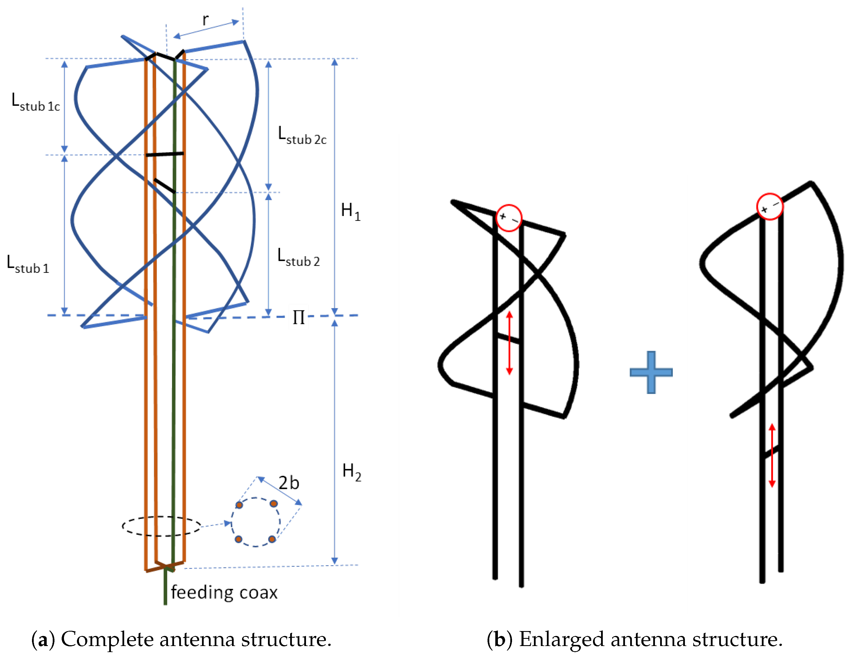 - Guo, J.; Yang, Y.; Huang, Y.; Sun, B. Slot multi-arm helix antenna with simple and efficient feeding network. Electron. Lett. 2015, 51, 1224–1226. [Google Scholar] [CrossRef]
