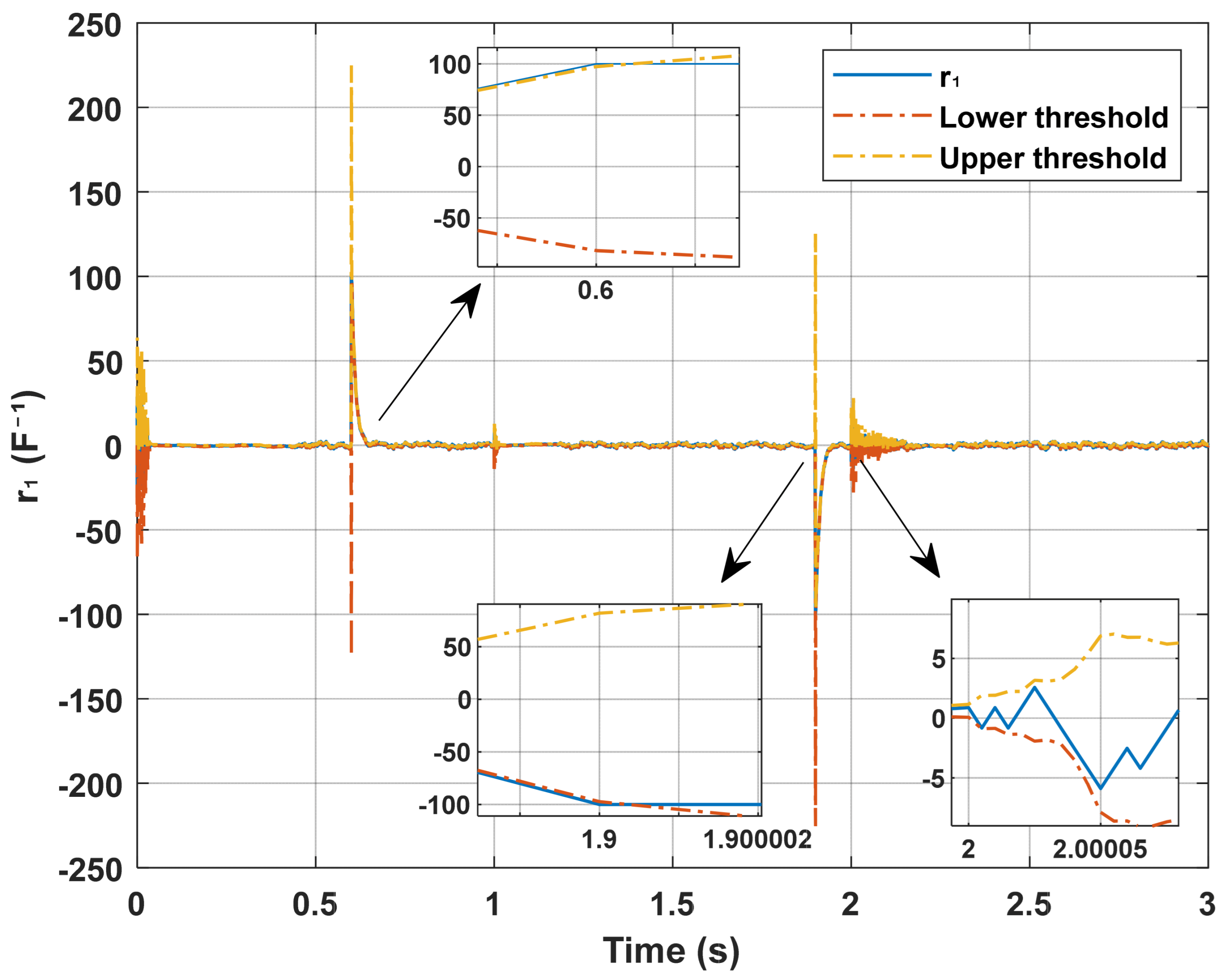 - Li, X.; Lyu, M.; Gao, X.; Yuan, C.; Zhen, D. An Adaptive Threshold Method for Multi-Faults Diagnosis of Lithium-Ion Batteries Based on Electro-Thermal Model. Measurement 2023, 222, 113671. [Google Scholar] [CrossRef]