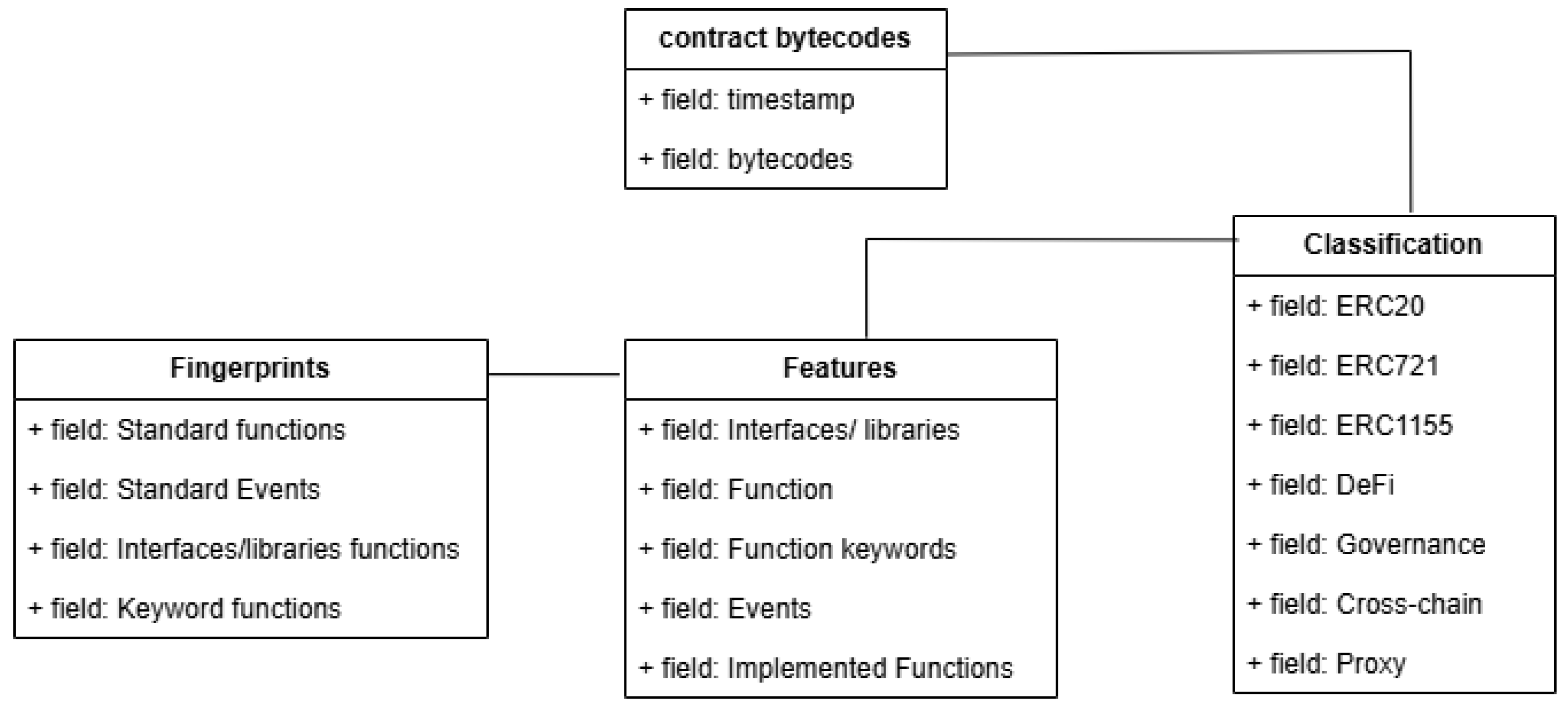 - Shi, C.; Xiang, Y.; Yu, J.; Gao, L.; Sood, K.; Doss, R.R.M. A bytecode-based approach for smart contract classification. In Proceedings of the 2022 IEEE International Conference on Software Analysis, Evolution and Reengineering (SANER), Honolulu, HI, USA, 15–18 March 2022; IEEE: Piscataway, NJ, USA, 2022; pp. 1046–1054. [Google Scholar]