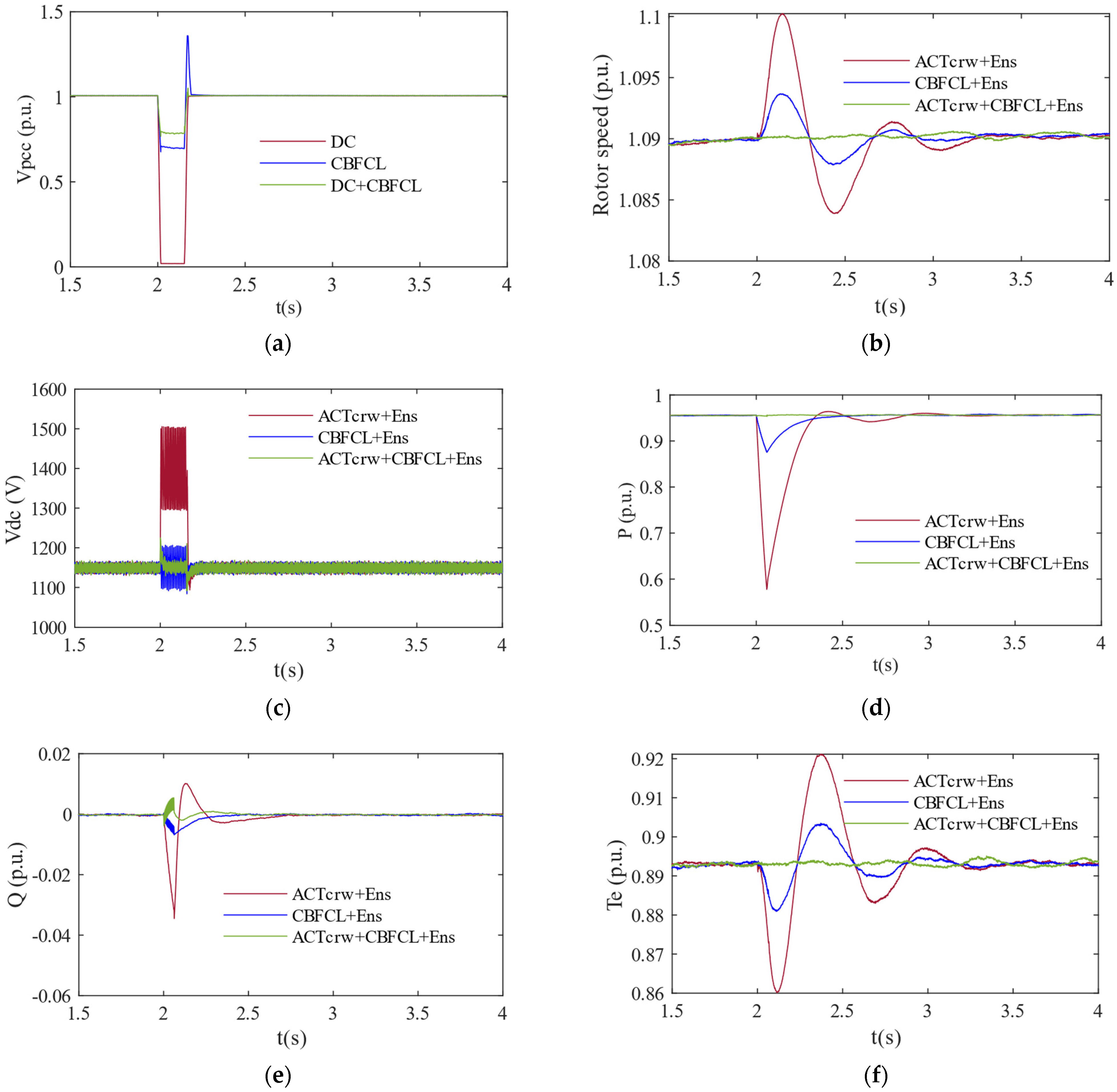 - Xie, Q.; Zheng, Z.; Xiao, X.; Dai, T.; Ren, J.; Xu, B. Synchronization Stability Constrained SFCL-Based Fault Ride-Through Strategy for PMSG. IEEE Trans. Appl. Supercond. 2024, 34, 5601905. [Google Scholar] [CrossRef]