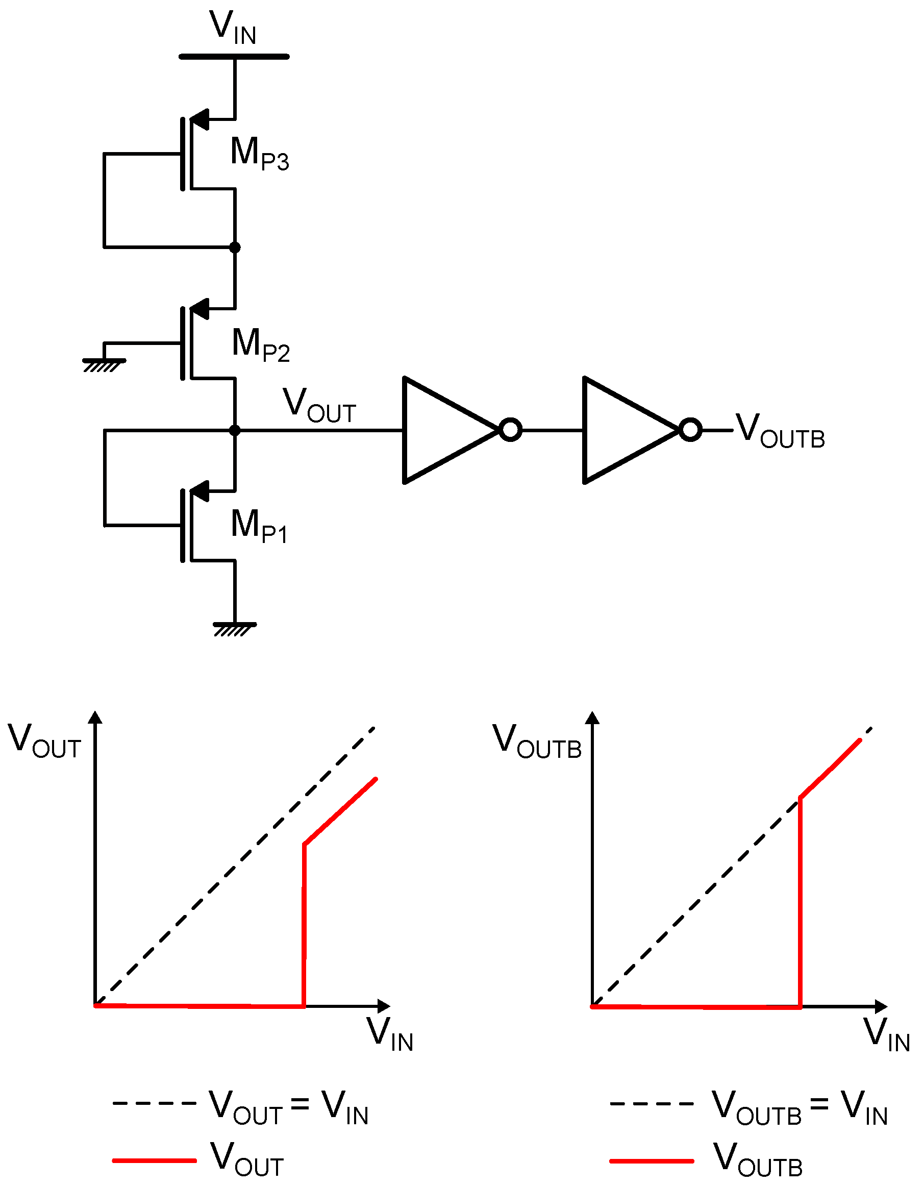 Considering the two-transistor (2T) PMOS-based solution, the trigger voltage is determined by the comparison between the currents of transistors