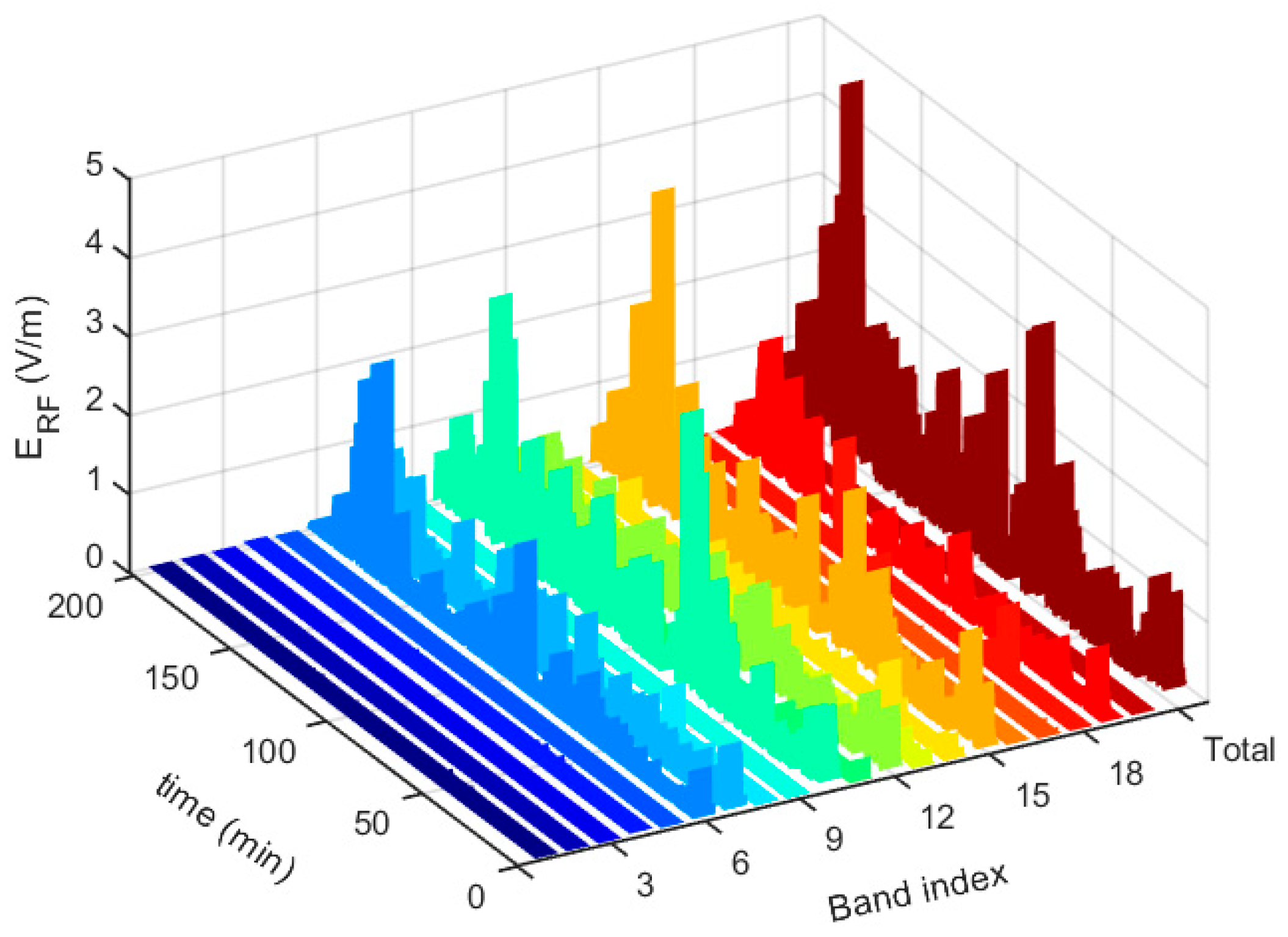 - Chiaramello, E.; Bonato, M.; Fiocchi, S.; Tognola, G.; Parazzini, M.; Ravazzani, P.; Wiart, J. Radio frequency electromagnetic fields exposure assessment in indoor environments: A review. Int. J. Environ. Res. Public Health 2019, 16, 955. [Google Scholar] [CrossRef]