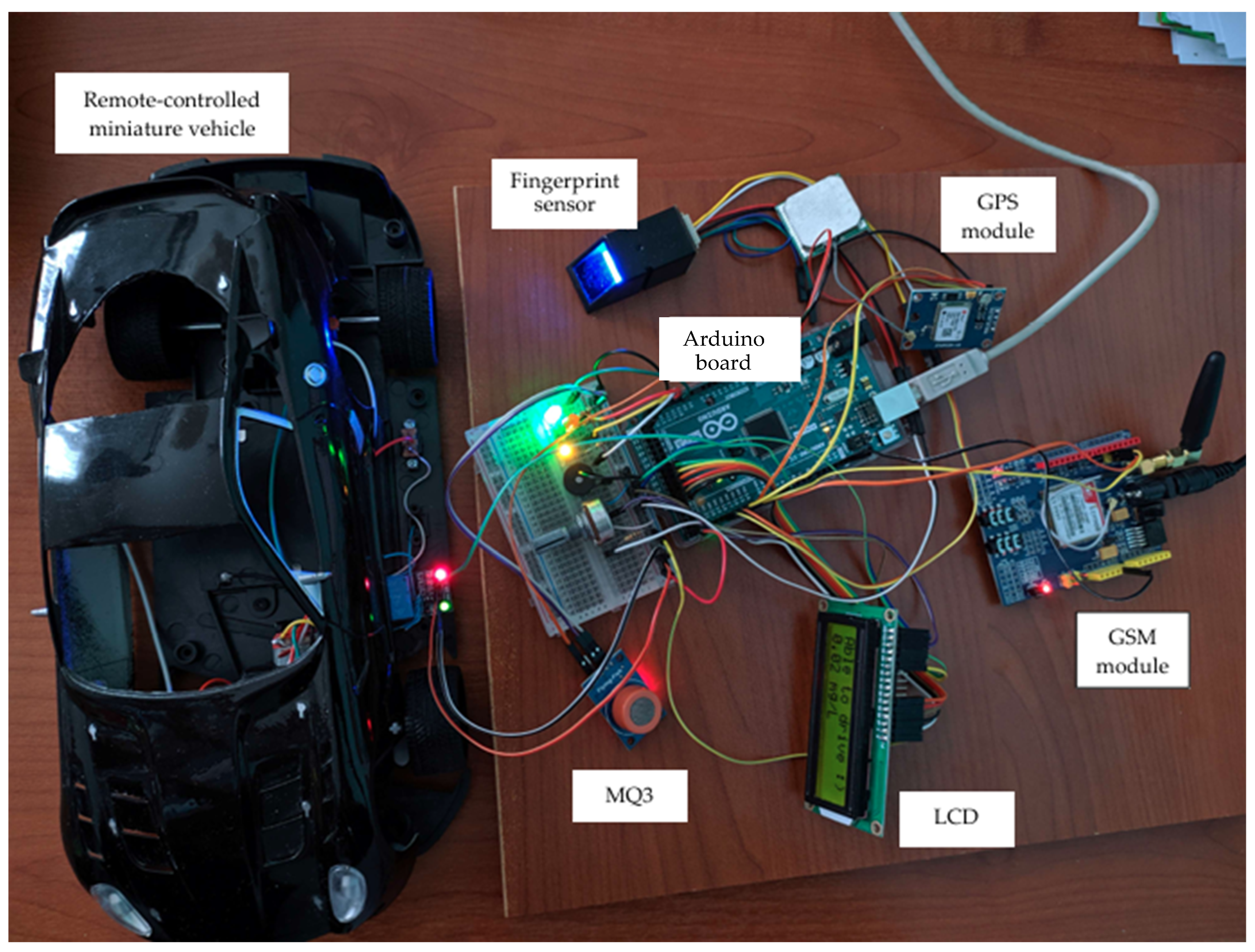 - Malathi, M.; Sujitha, R.; Revathy, M.R. Alcohol detection and seat-belt control system using Arduino. In Proceedings of the International Conference on Innovations in Information, Embedded and Communication Systems ICIIECS, Coimbatore, India, 17–18 March 2017. [Google Scholar]