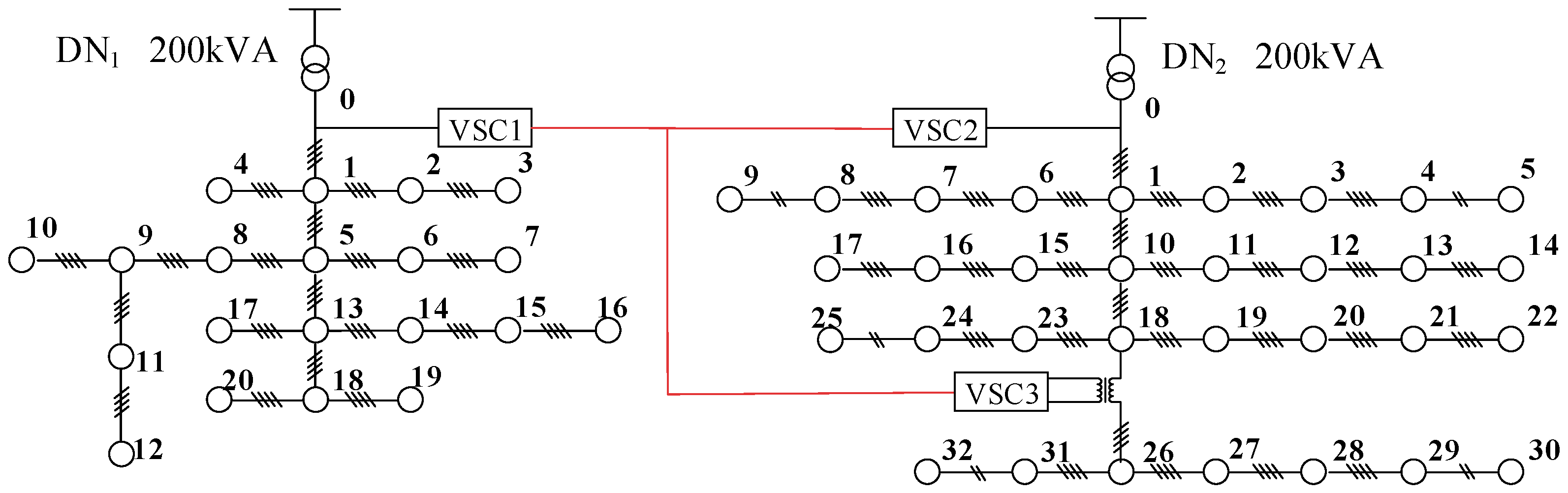 - The proposed topology can upgrade traditional distribution networks into topologically flexible, controllable AC/DC hybrid distribution networks, aligning with the development trends of modern distribution systems.