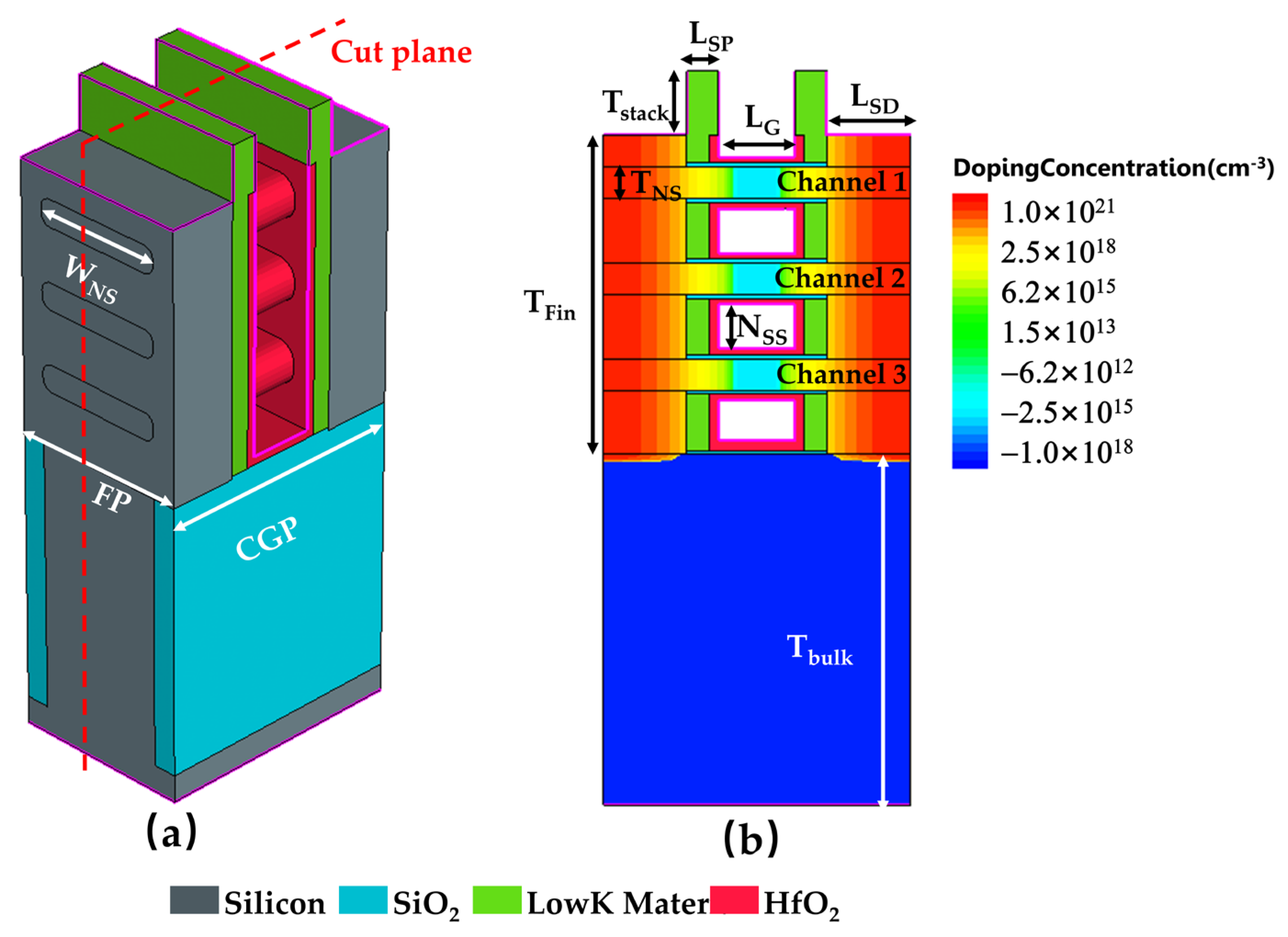 | WNS (nm) | Nanosheet Width | 15 | Nbulk (cm−3) | Bulk Doping Concentration [17] | 1× 1018 |