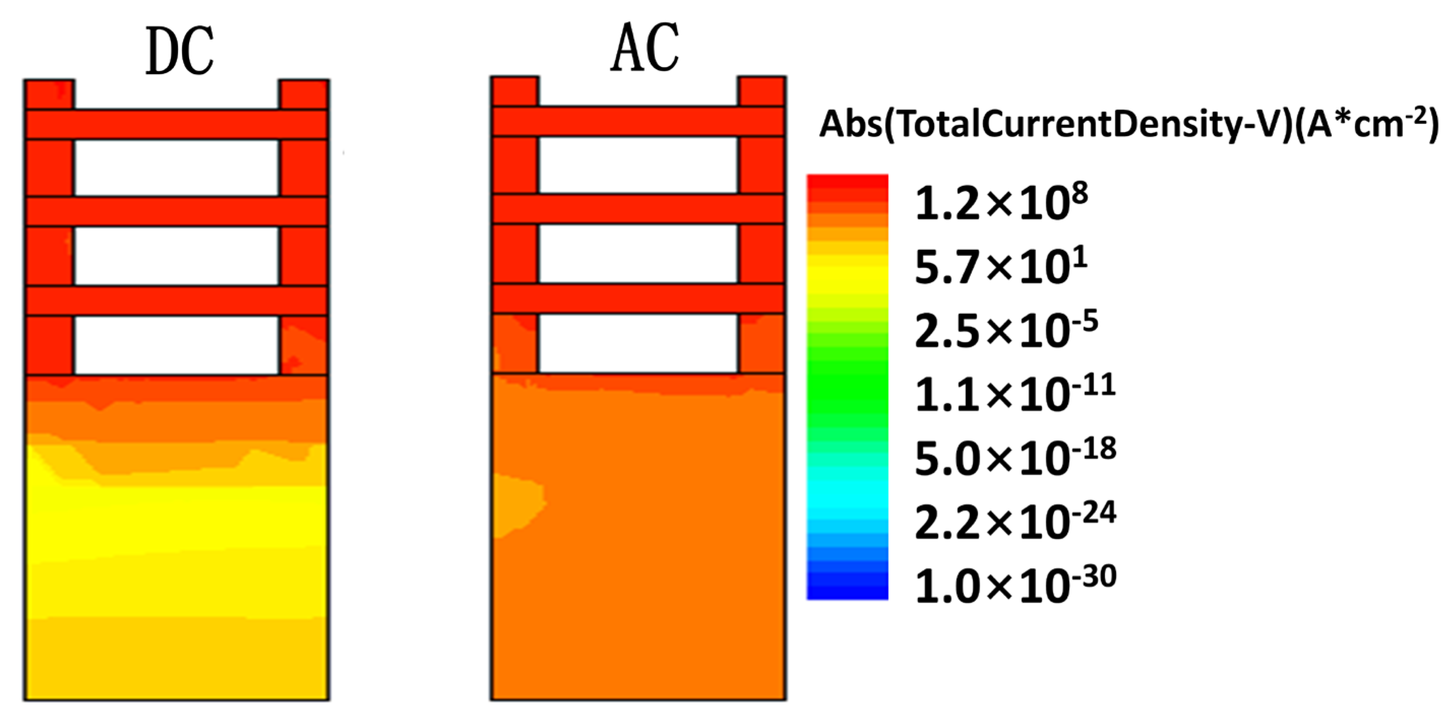 3.1. DC/AC Characteristic of SHE in Triple-Layer Stacked Nanosheets