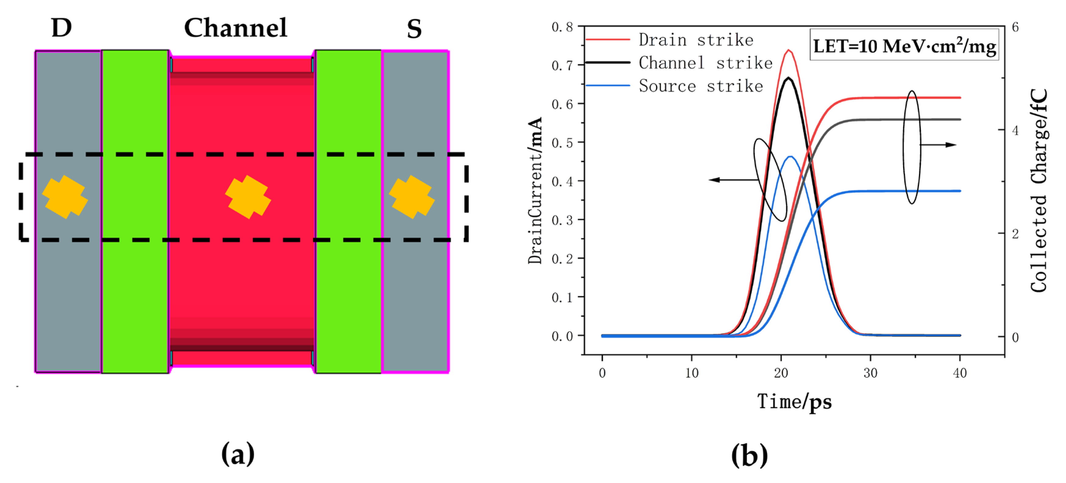 - Aneesh, Y.M.; Sriram, S.R.; Pasupathy, K.R.; Bindu, B. An Analytical Model of Single-Event Transients in Double-Gate MOSFET for Circuit Simulation. IEEE Trans. Electron Devices 2019, 66, 3710–3717. [Google Scholar] [CrossRef]