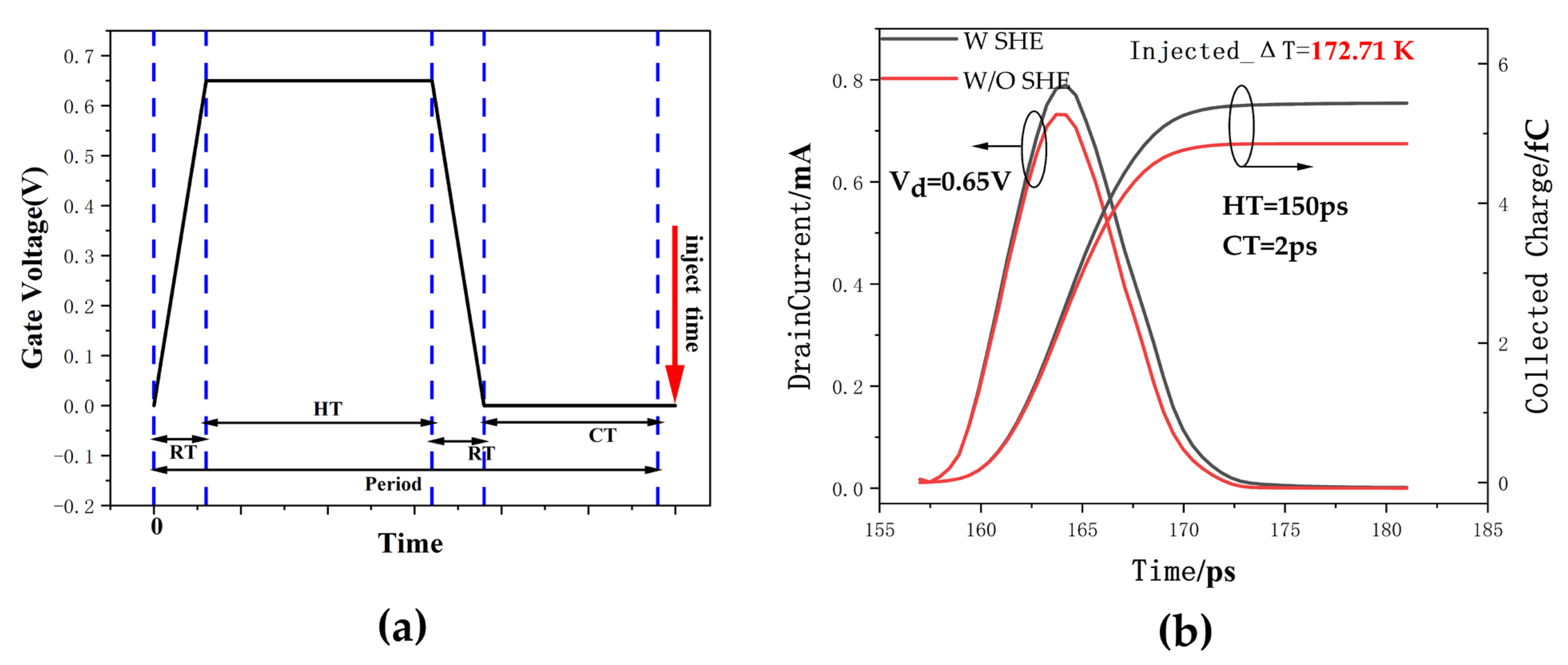 - Rajakumar, P.S.; Satheesh Kumar, S. Analysis of Single Event Transient Impact in Si/Si-Ge Gate-All-Around Nanowire FET Using TCAD. Results Eng. 2025, 25, 103930. [Google Scholar]