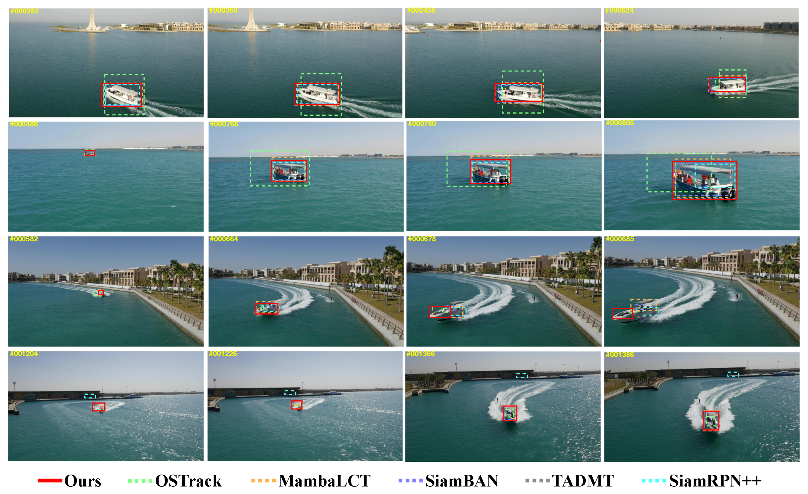 - Extensive experiments demonstrate that MSTFT achieves state-of-the-art performance on multiple UAV tracking benchmarks, attaining a superior balance among accuracy, robustness, and efficiency, and providing an effective and efficient solution for UAV small-target tracking.