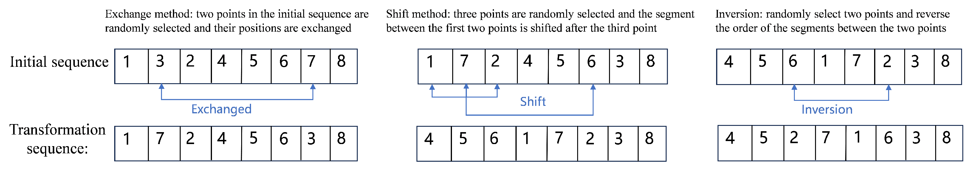 - He, Q.; Wu, Y.L.; Xu, T.W. Application of improved genetic simulated annealing algorithm in TSP optimization. Control Decis. 2018, 33, 7. [Google Scholar]