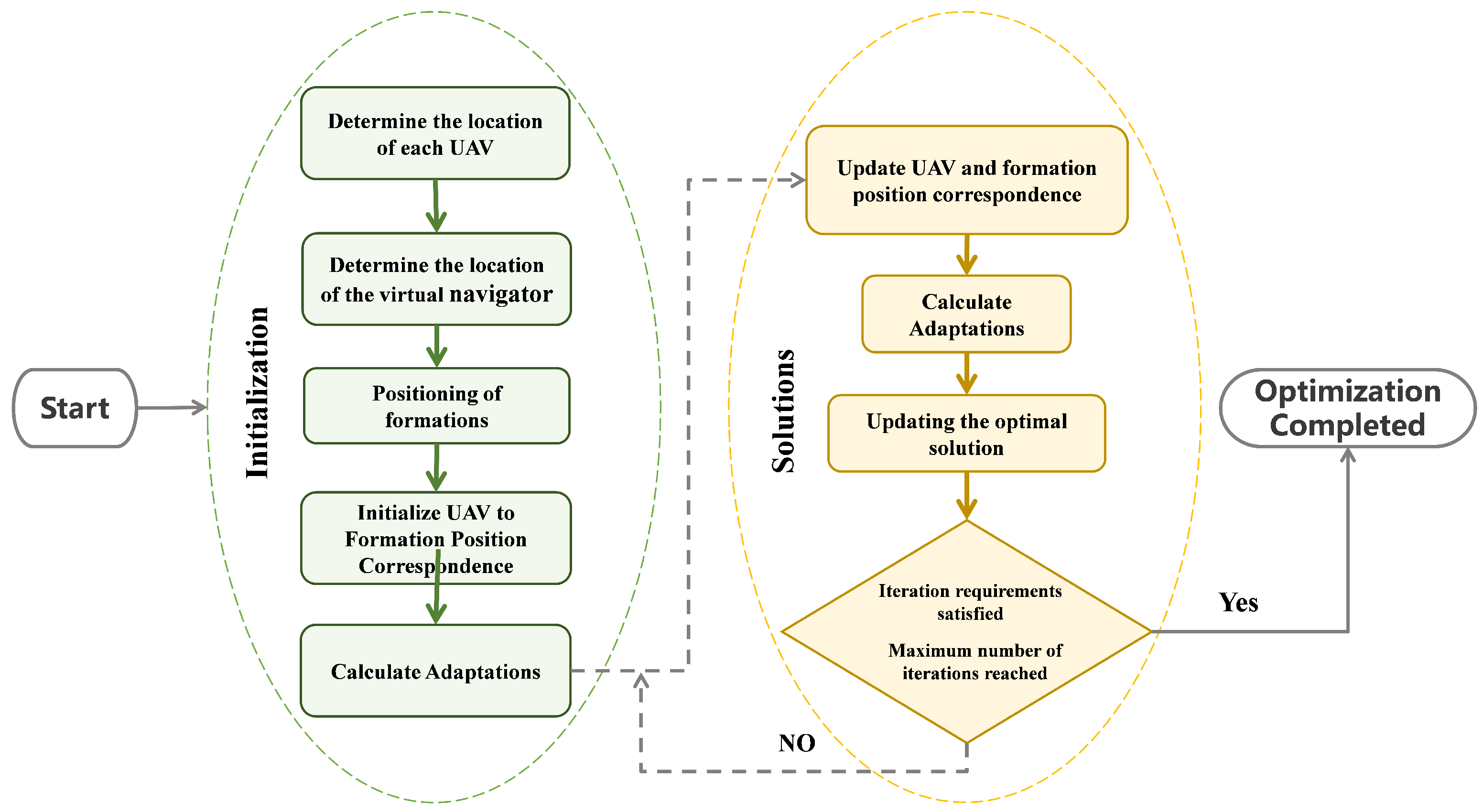 - Lack of Assignment Optimization for Convergence: Existing research generally lacks a dynamic position assignment mechanism. Specifically, it fails to dynamically optimize which UAV should fly to which formation position point during the formation convergence process based on the global position distribution—a combinatorial optimization problem. This deficiency leads to the aforementioned inefficiency in convergence.