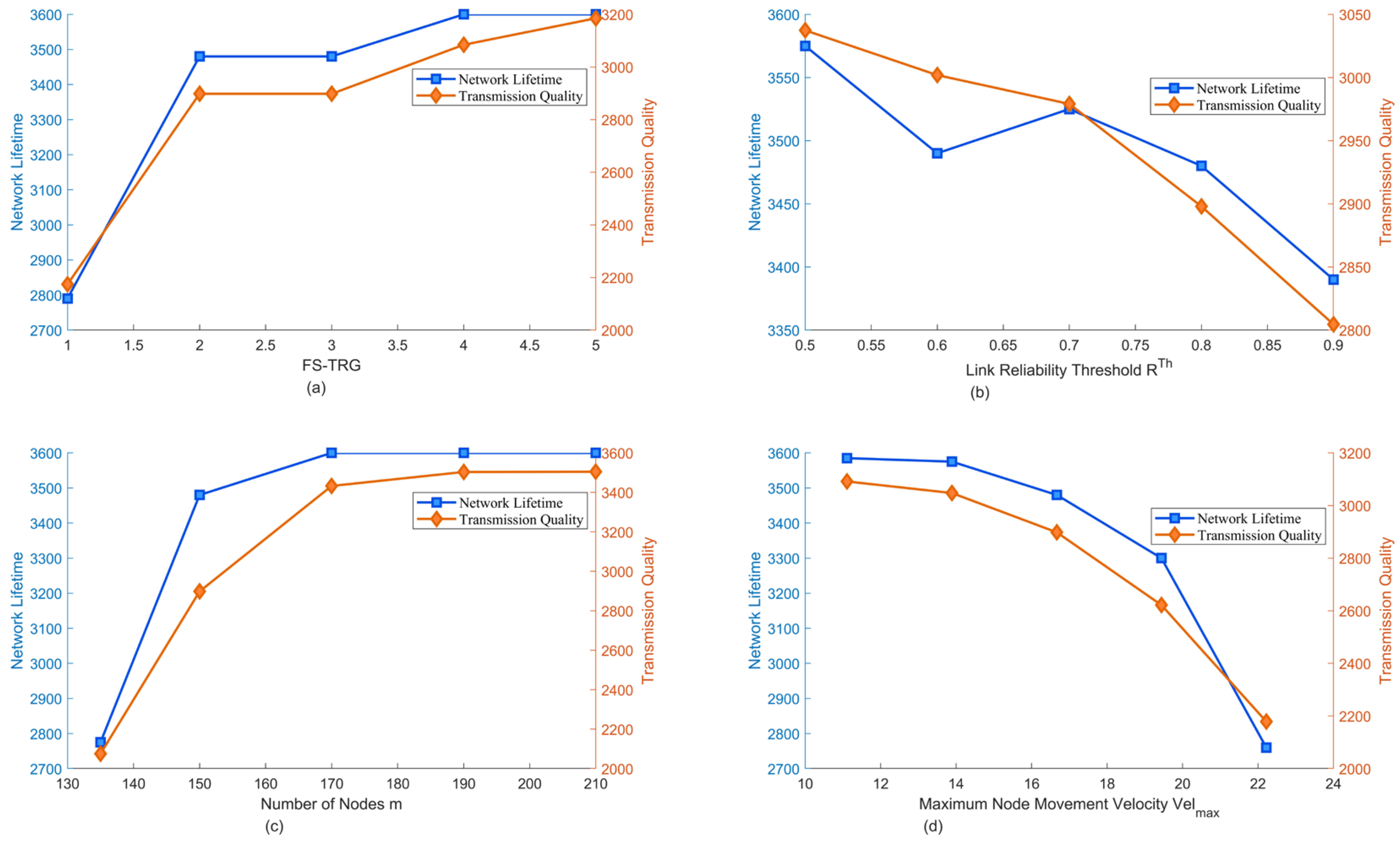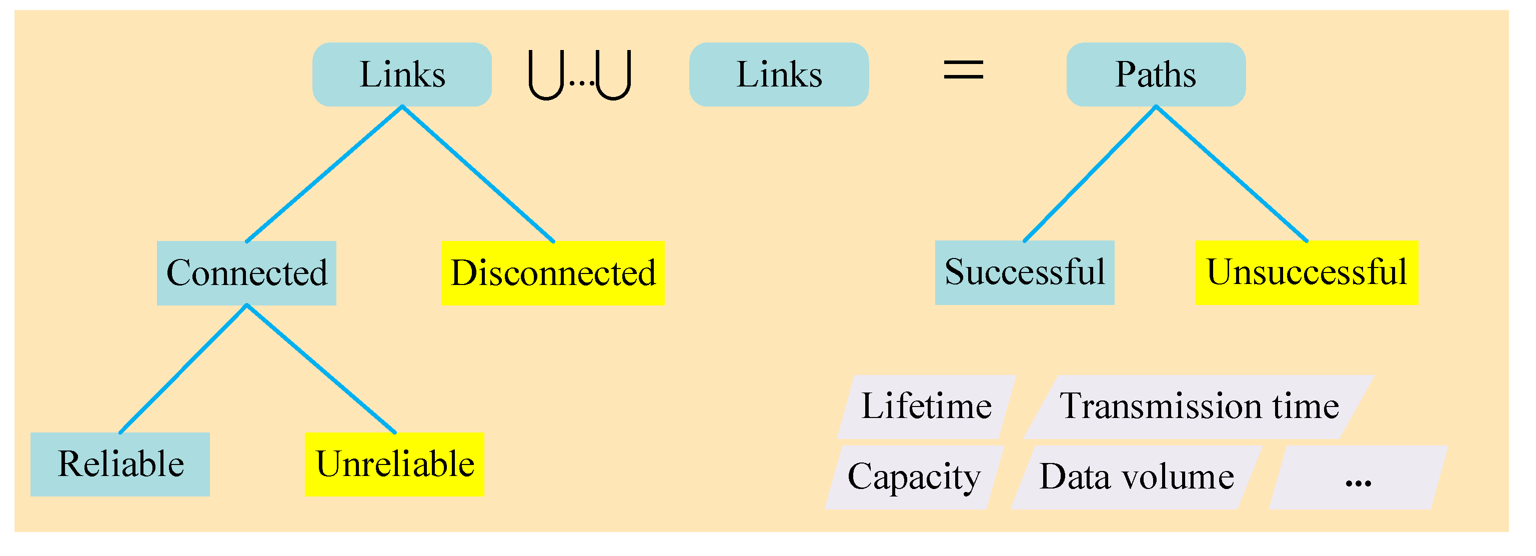 - Wang, N.; He, J.; Xiang, S.; Yang, J. Transmission Reliability Evaluation of the Wireless Mobile Ad Hoc Network Considering the Routing Protocol and Randomness of Channel Capacity. Qual. Reliab. Eng. Int. 2024, 40, 664–680. [Google Scholar] [CrossRef]