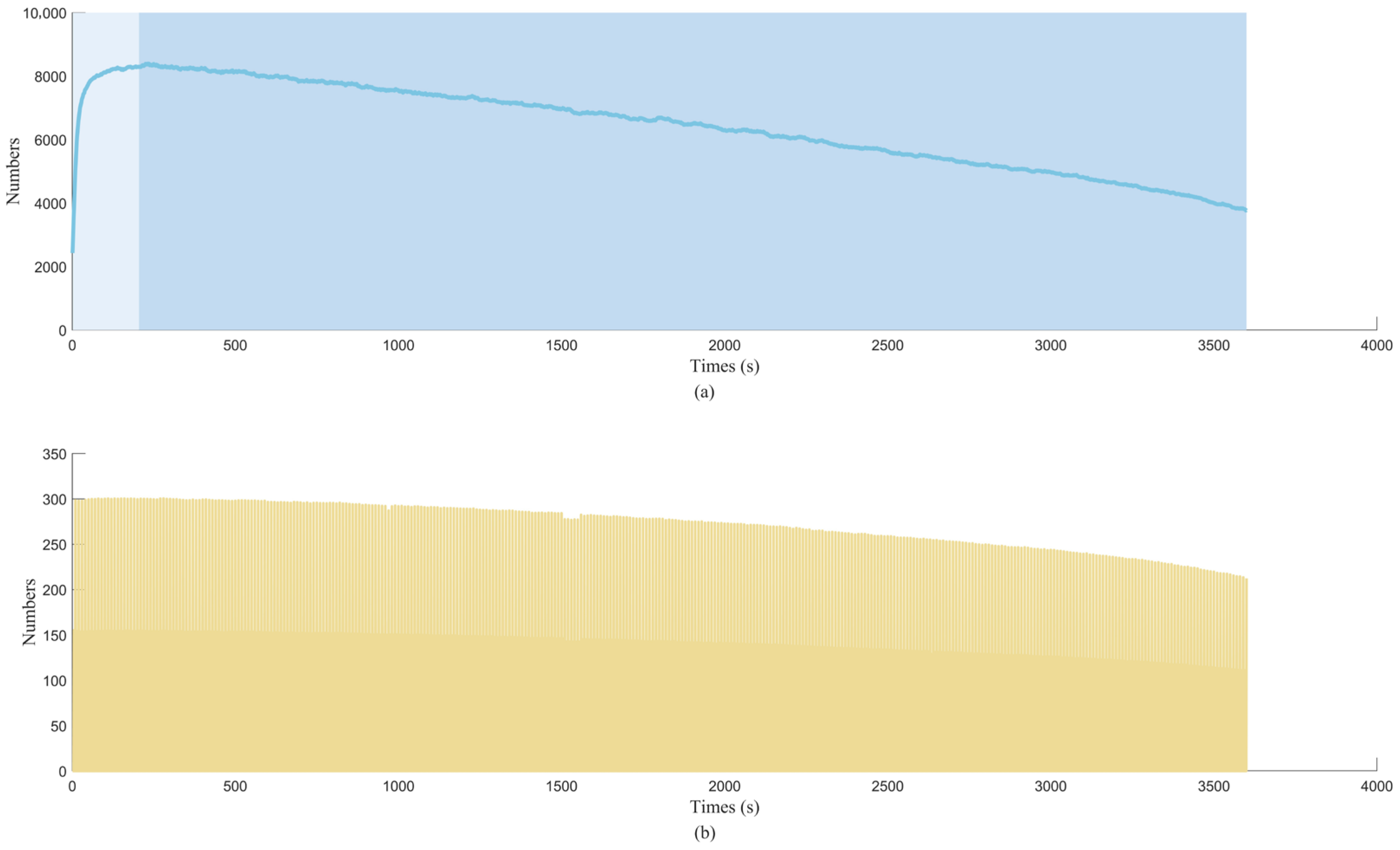 - Update the simulation clock: Update If , proceed to step (2) and continue the iterative operation; otherwise, proceed to step (12).