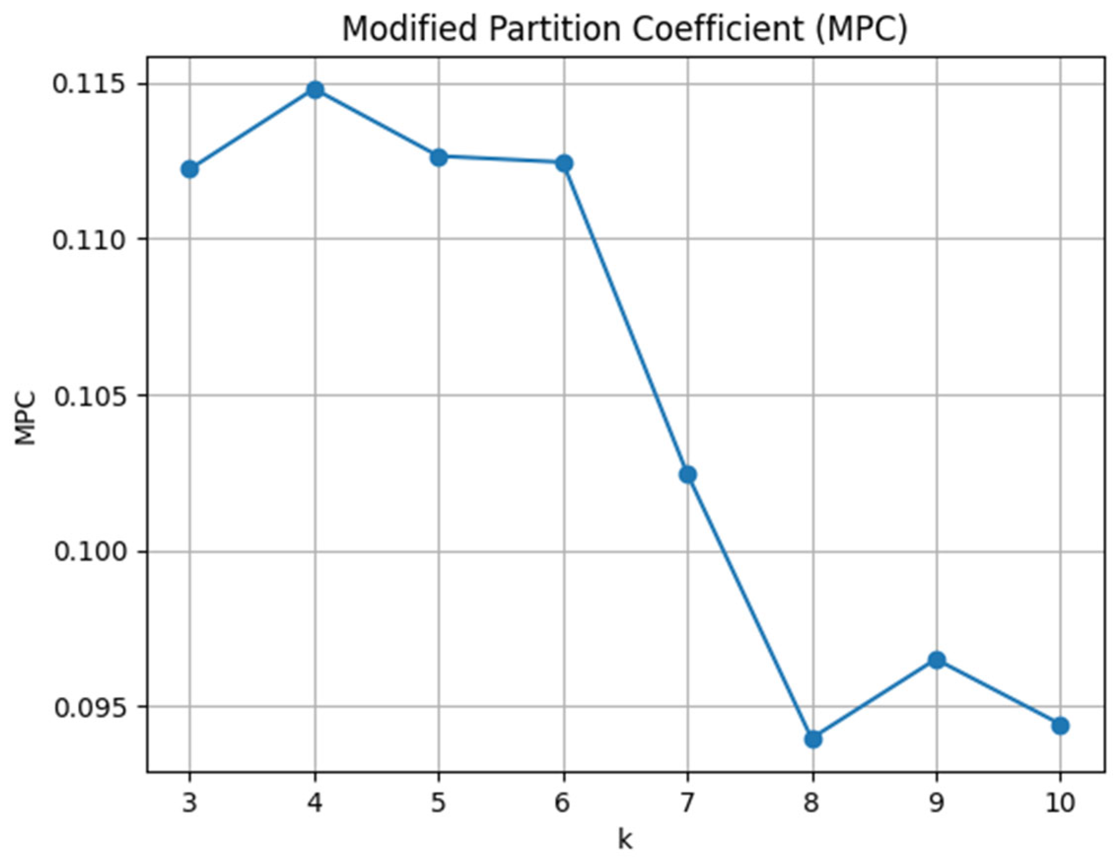- Verma, R.K.; Tiwari, R.; Thakur, P.S. Partition Coefficient and Partition Entropy in Fuzzy C Means Clustering. J. Sci. Res. Rep. 2023, 29, 1–6. [Google Scholar] [CrossRef]