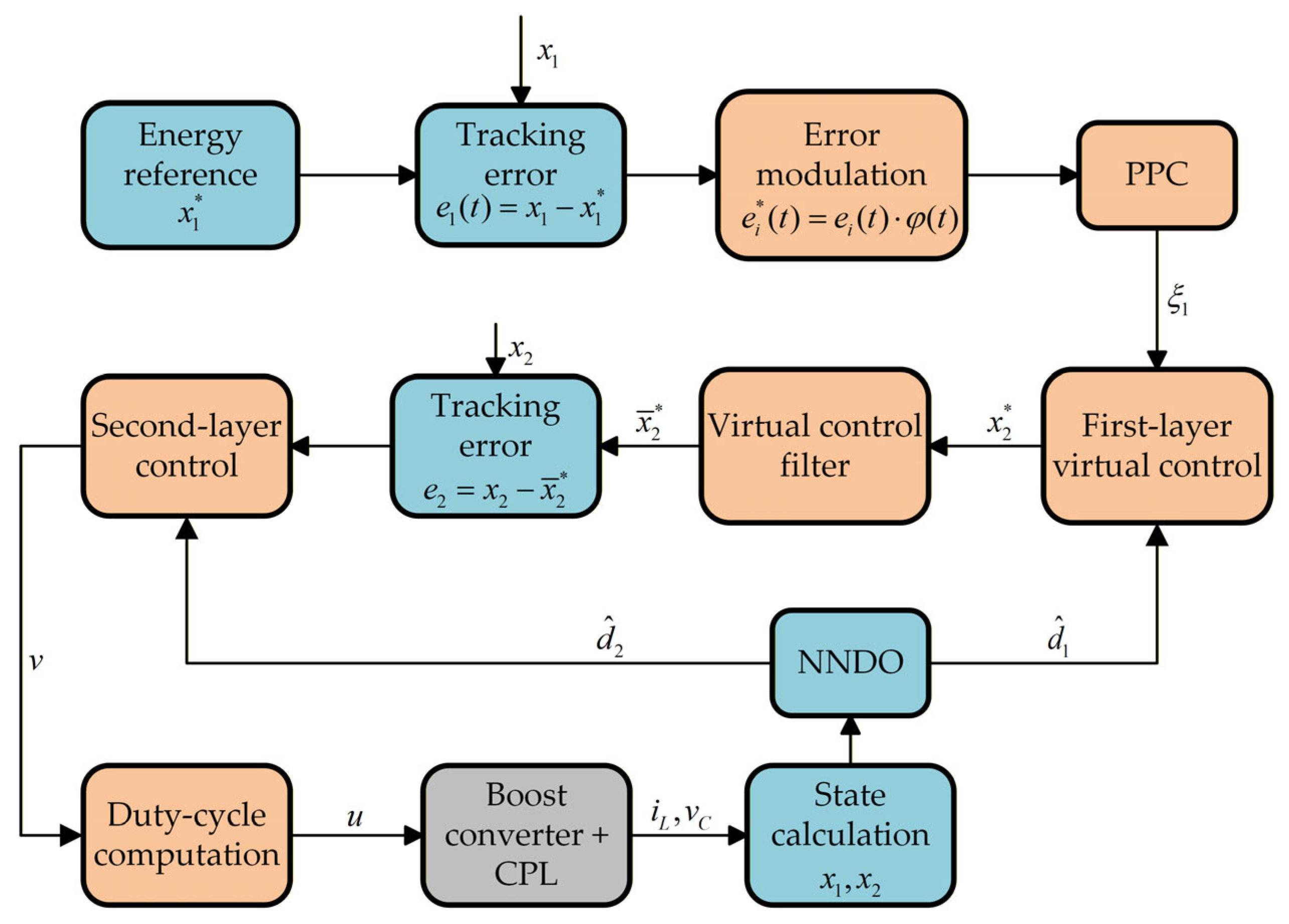 Next, using the schematic description of the DC–DC boost conversion platform, the system dynamics can be derived as