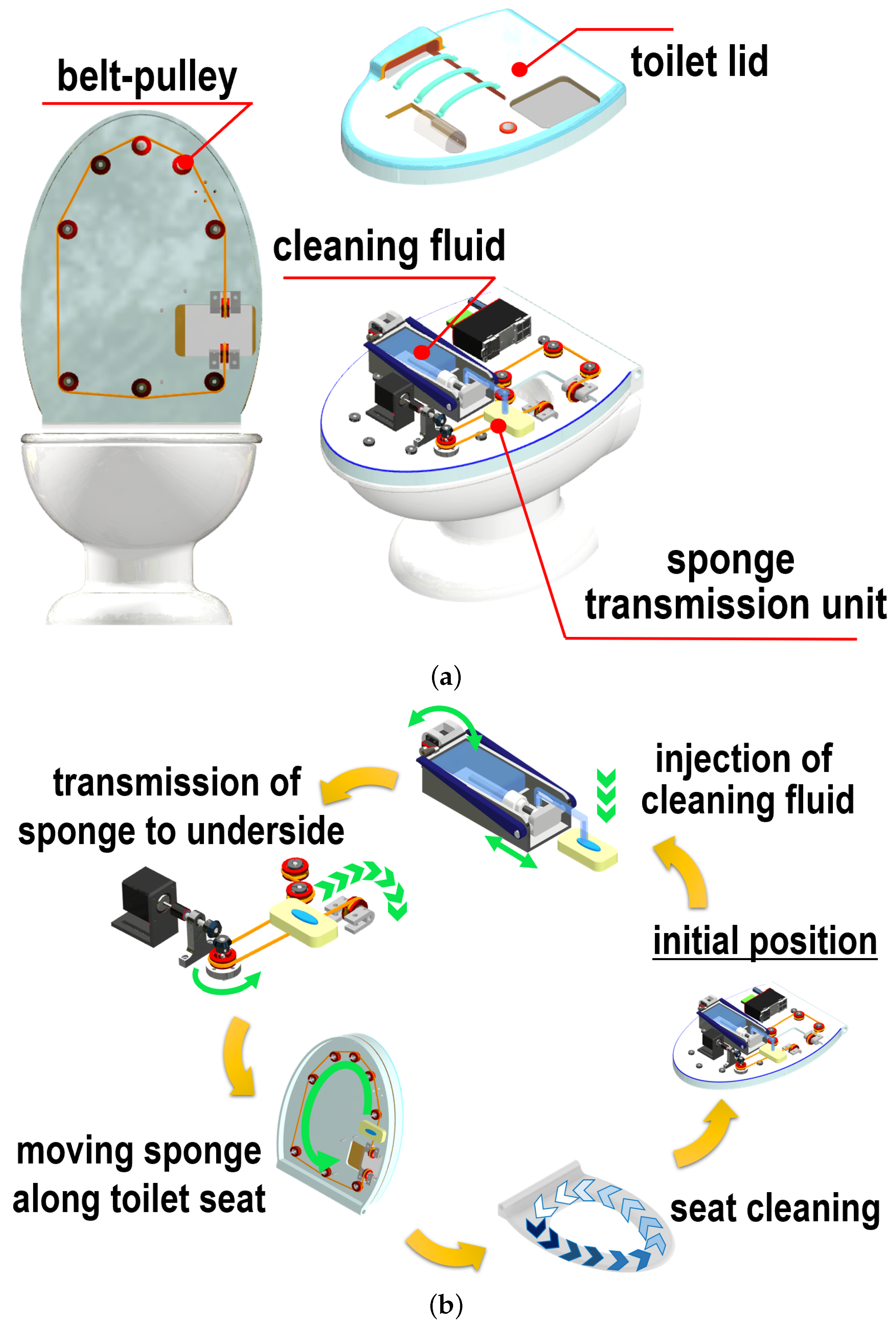 This study focused on the development of a toilet seat equipped with an automatic cleaning function. The overall concept was established around a cleaning sequence designed to minimize user burden. Based on this concept, a flexible-rack type prototype was developed. Through a series of numerical simulations and evaluation experiments, the effectiveness of the proposed prototype was verified, and it was confirmed that the prototype provided sufficient cleaning performance.