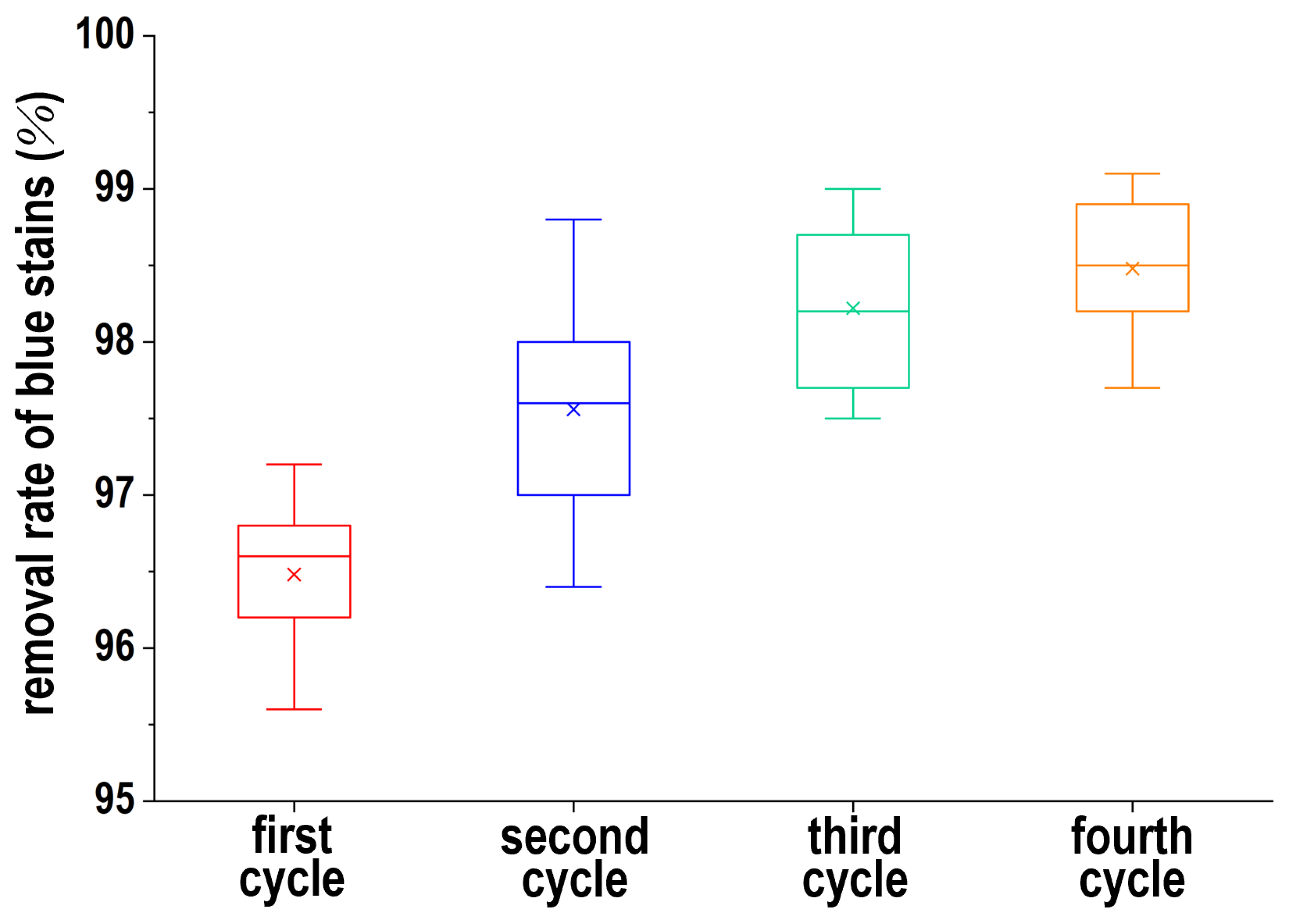 Figure 15, where the interquartile range (25–75%), mean values, and standard deviations are indicated by the boxes, X-marks, and error bars, respectively.