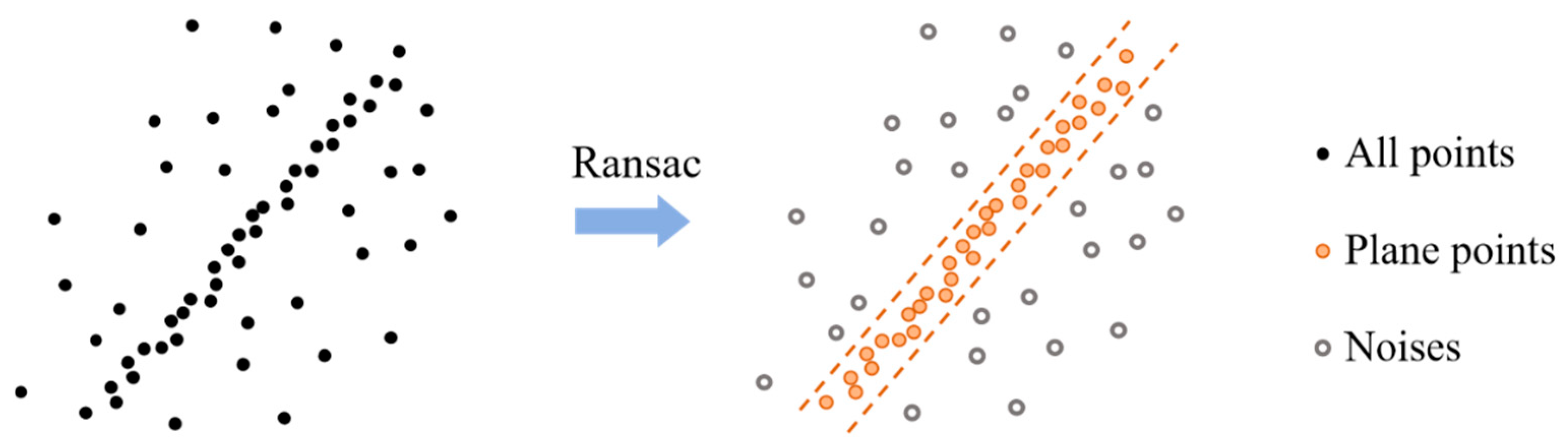 - Schnabel, R.; Wahl, R.; Klein, R. Efficient RANSAC for point-cloud shape detection. In Computer Graphics Forum; Wiley: Hoboken, NJ, USA, 2007; Volume 26, pp. 214–226. [Google Scholar]