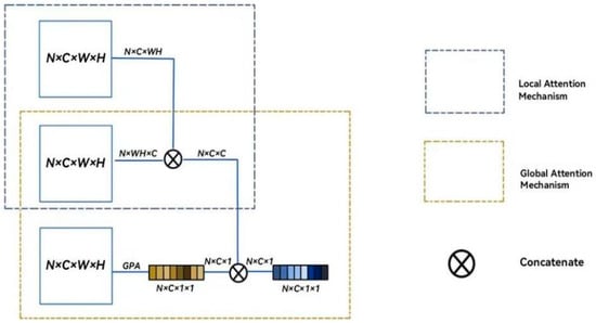 Schematic diagram of the attention mechanism used in this study. N, C, H, and W denote the batch size, channel number, and spatial dimensions (height and width) of the feature map, respectively.