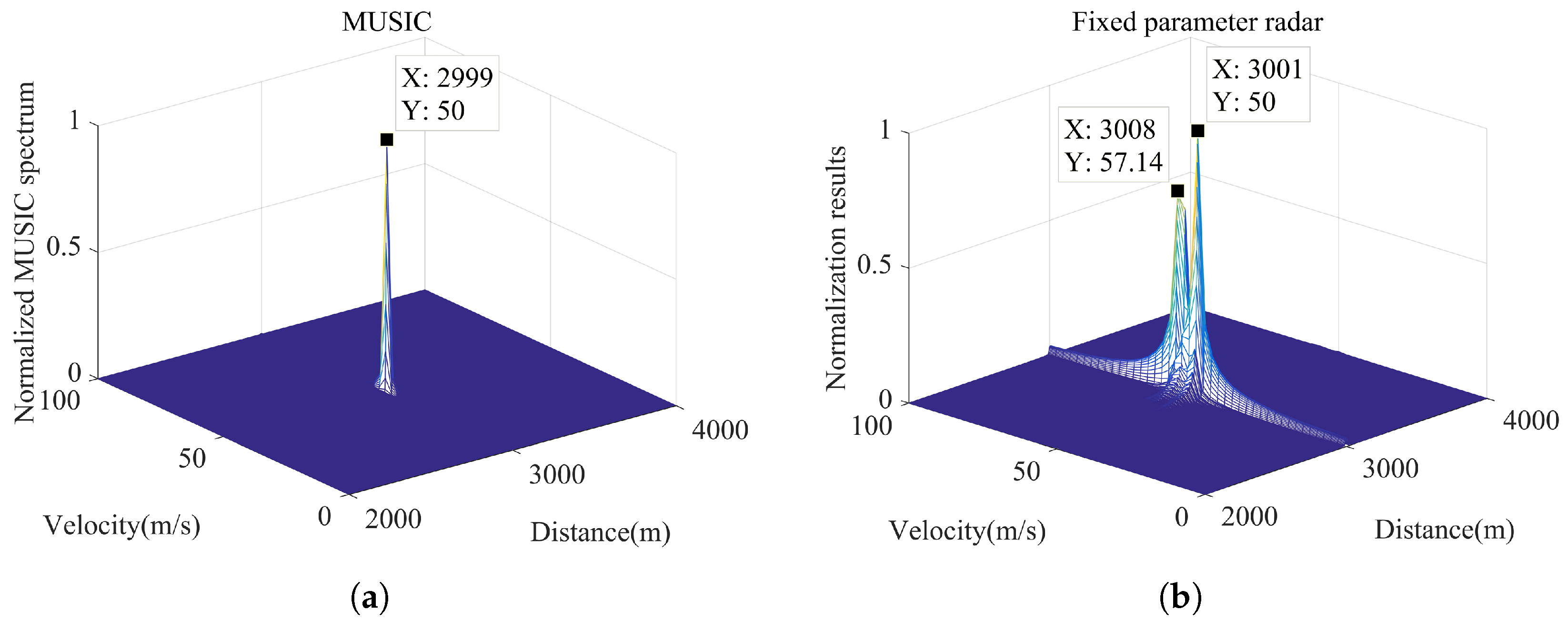 - Lee, J.; Park, J.; Chun, J. Weighted Two-Dimensional Root MUSIC for Joint Angle-Doppler Estimation with MIMO Radar. IEEE Trans. Aerosp. Electron. Syst. 2019, 55, 1474–1482. [Google Scholar] [CrossRef]