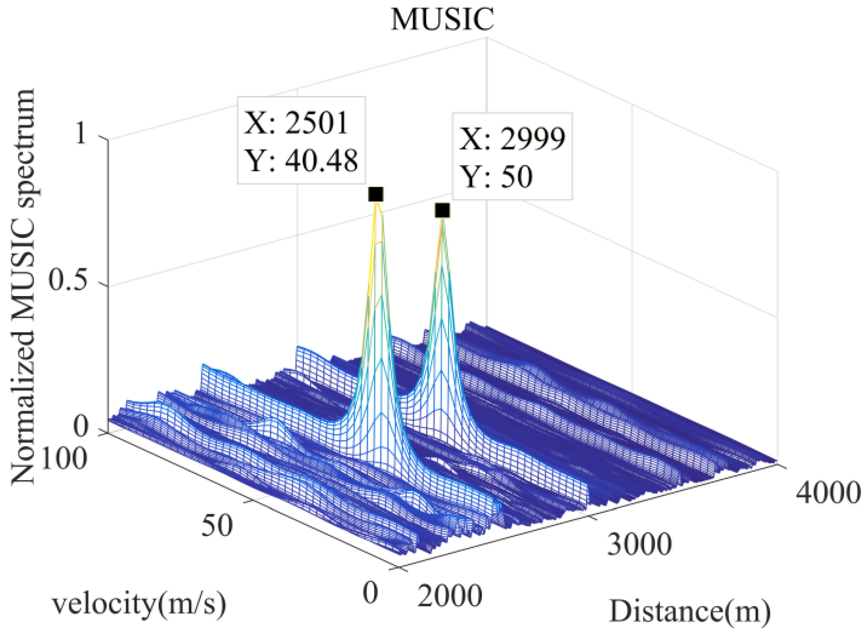 - We propose a specialized signal processing method based on the segmented MUSIC algorithm, specifically adapted to address the coherence challenges of the new three-parameter agile waveform. This approach effectively improves the accuracy of target velocity estimation while substantially reducing computational complexity compared to global search methods.