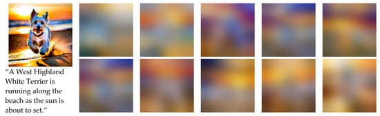 - Razzhigaev, A.; Shakhmatov, A.; Maltseva, A.; Arkhipkin, V.; Pavlov, I.; Ryabov, I.; Kuts, A.; Panchenko, A.; Kuznetsov, A.; Dimitrov, D. Kandinsky: An improved text-to-image synthesis with image prior and latent diffusion. arXiv 2023, arXiv:2310.03502. [Google Scholar]