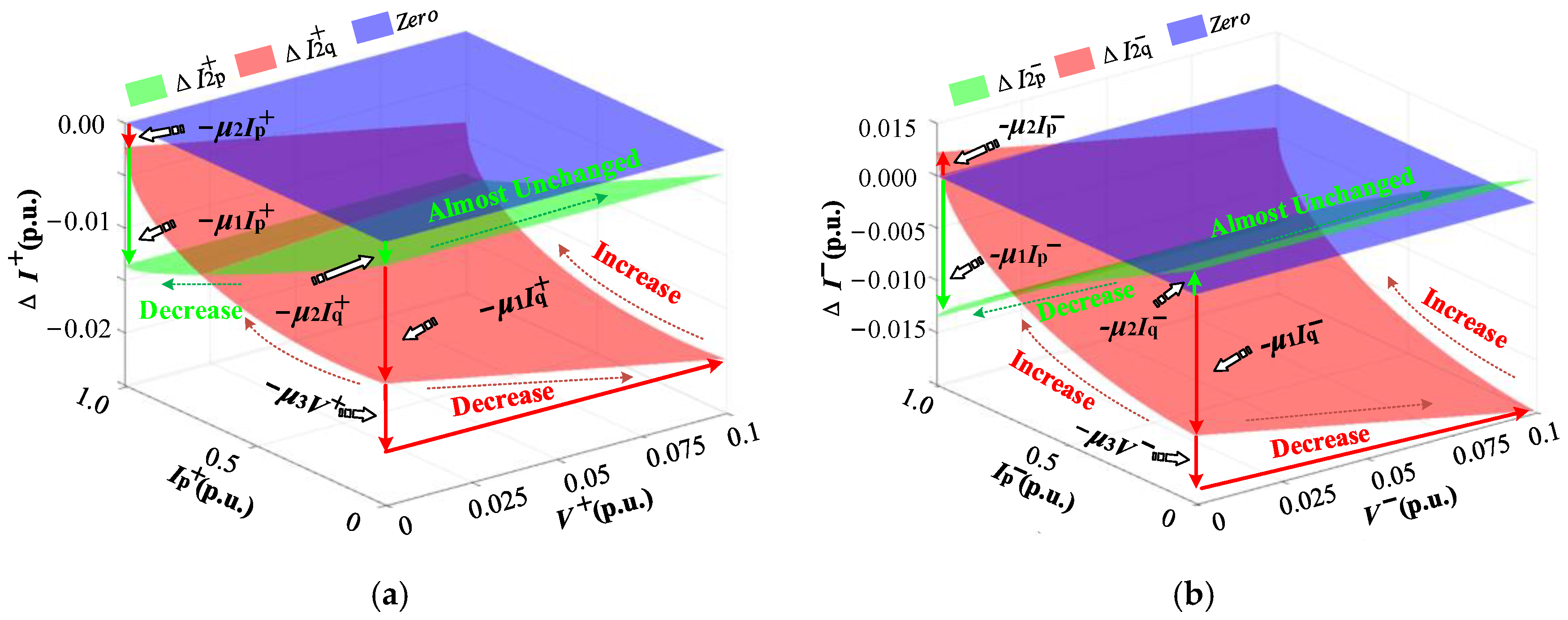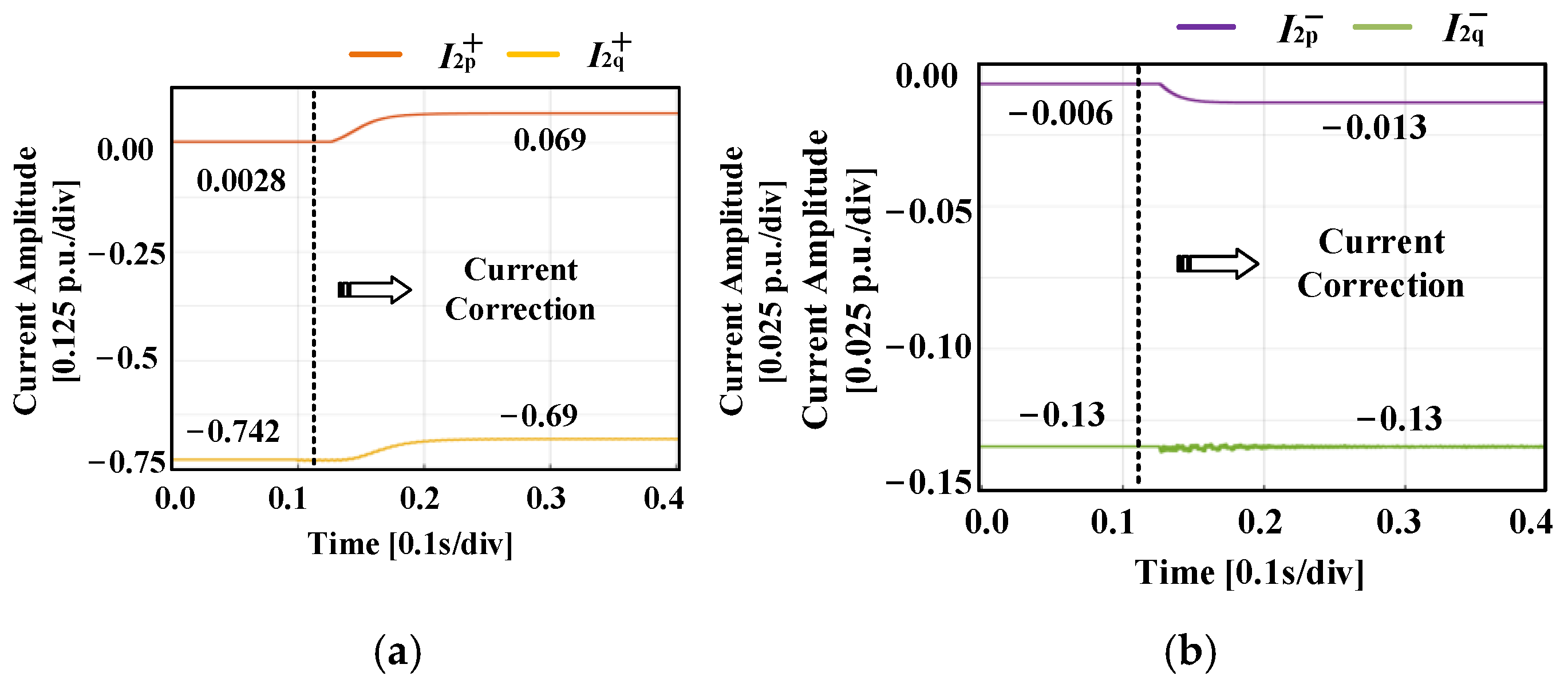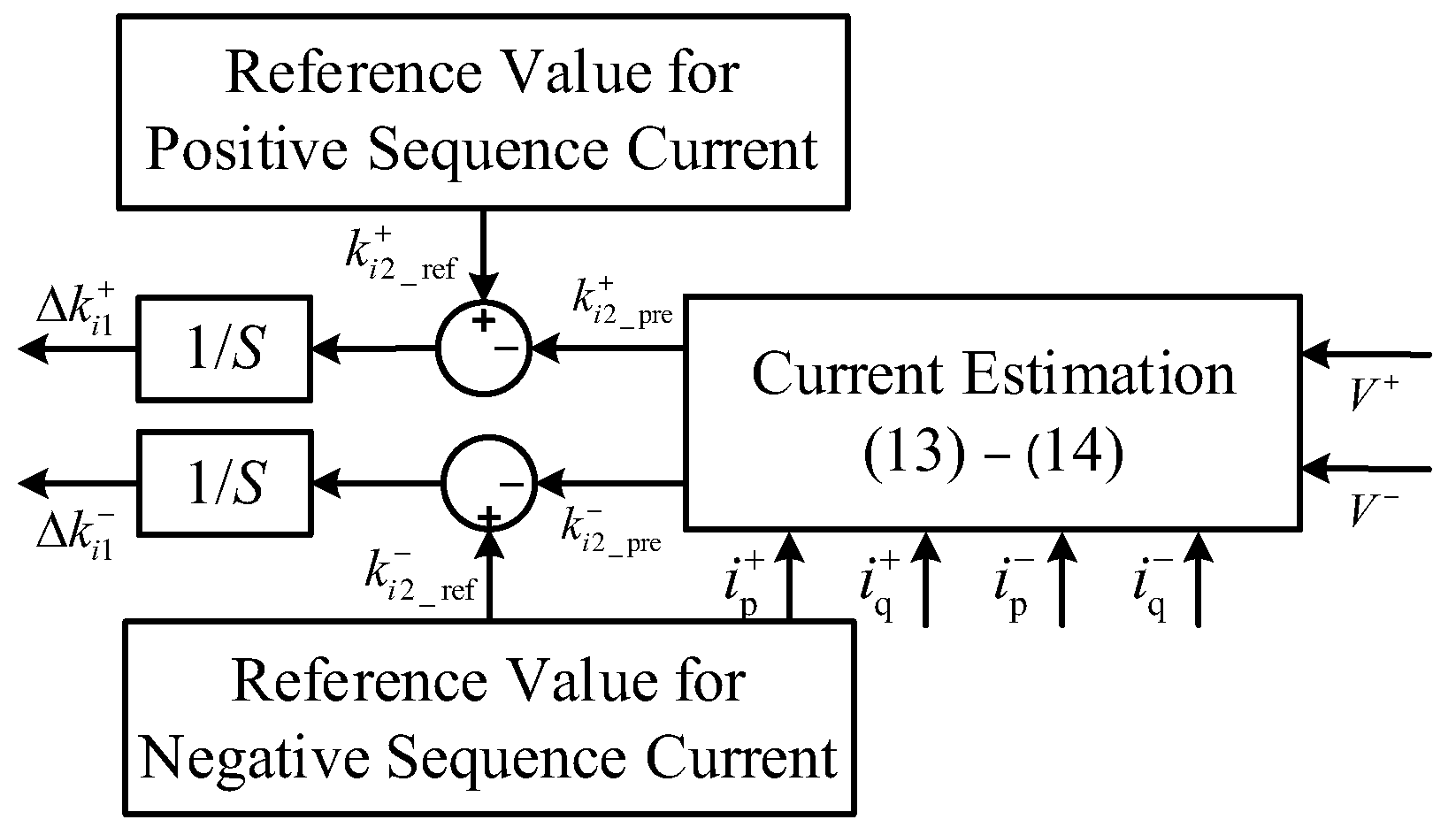 | Methods | Ip+ (p.u.) | Iq+ (p.u.) | Ip− (p.u.) | Iq− (p.u.) | V+ (p.u.) | V− (p.u.) |
