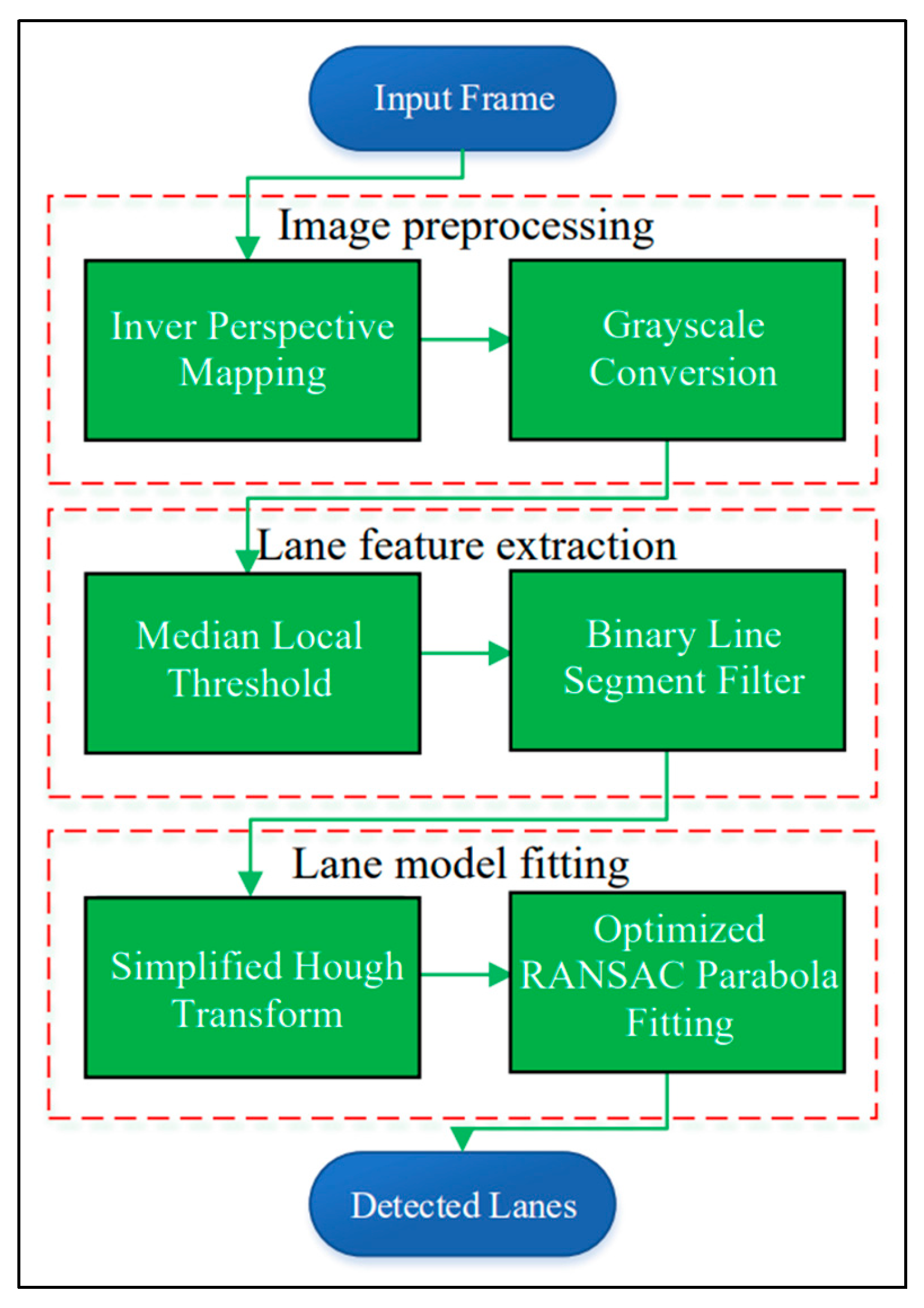 - We present a complete sensor-layer lane detection pipeline with analyzable worst-case execution time, achieving real-time performance (32.7 ms per frame) on a 2 GHz ARM platform without discrete GPU acceleration.