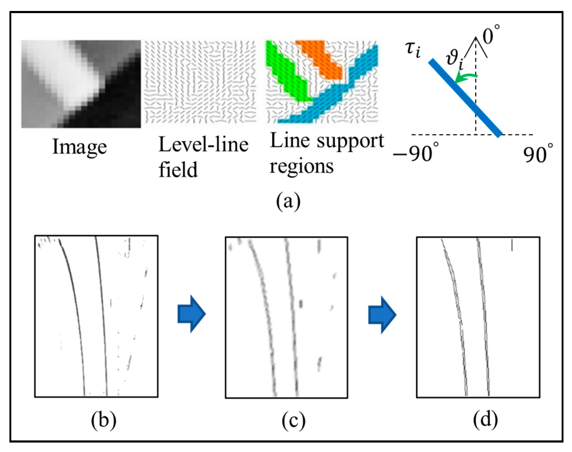 | Orientation angle of the (i)-th line segment | S | Aggregate fitting score in RANSAC | |