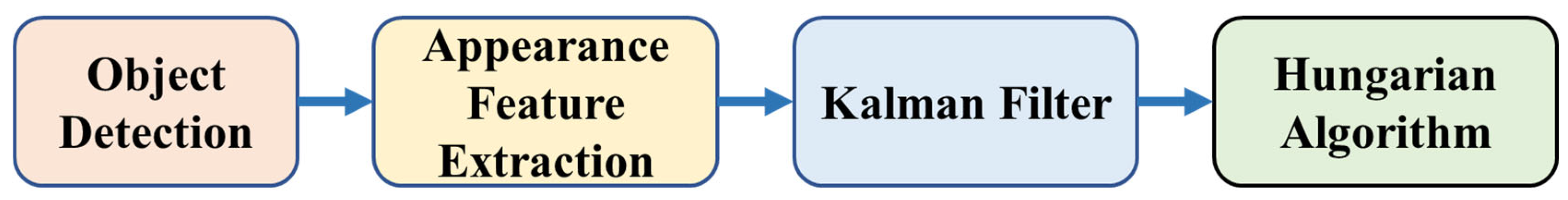 - Luo, W.; Xing, J.; Milan, A.; Zhang, X.; Liu, W.; Kim, T.-K. Multiple Object Tracking: A Literature Review. Artif. Intell. 2021, 293, 103448. [Google Scholar] [CrossRef]