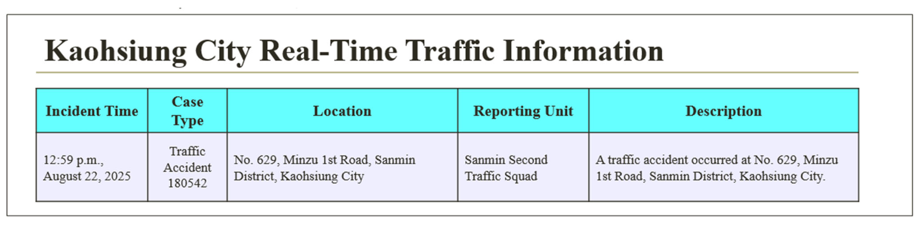 | Traffic Accident Analysis & Suggestions | Mentions accident in Qianzhen District (not at the intersection), but notes diversion effect | Mentions accident in Qianzhen District (not at the intersection), but notes diversion effect | Mentions accidents in Qianzhen and Sanmin, emphasizing “no accidents at the intersection.” |