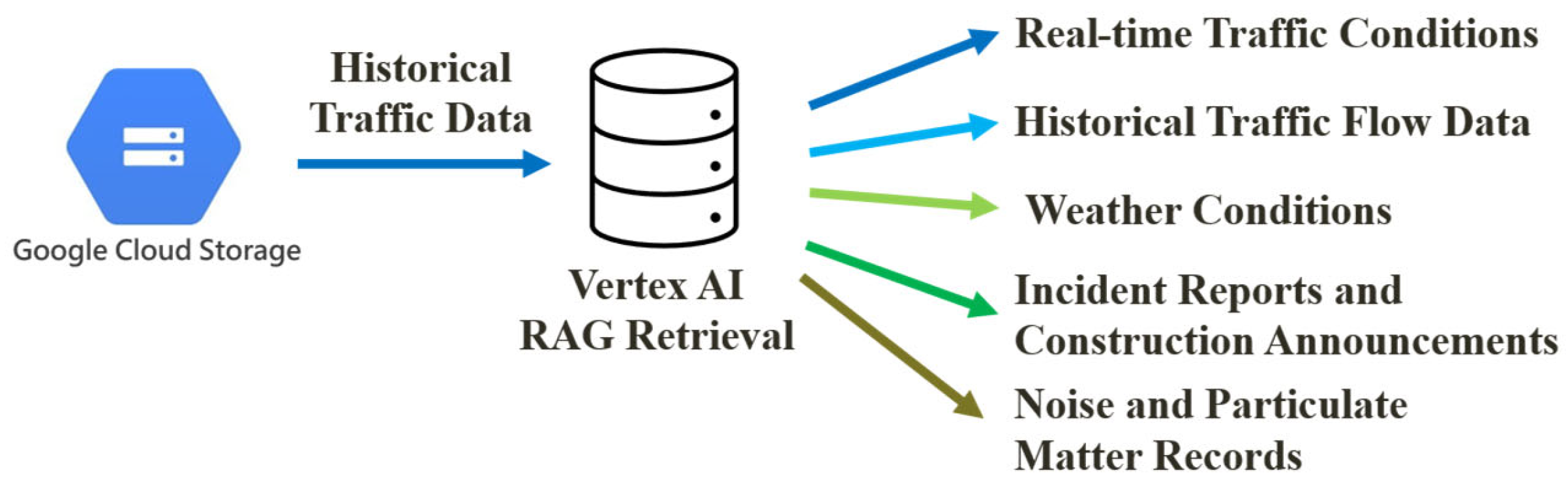 - Xu, H.; Yuan, J.; Zhou, A.; Xu, G.; Li, W.; Ban, X.; Ye, X. GenAI-Powered Multi-Agent Paradigm for Smart Urban Mobility: Opportunities and Challenges for Integrating Large Language Models (LLMs) and Retrieval-Augmented Generation (RAG) with Intelligent Transportation Systems. arXiv 2024, arXiv:2409.00494. [Google Scholar]