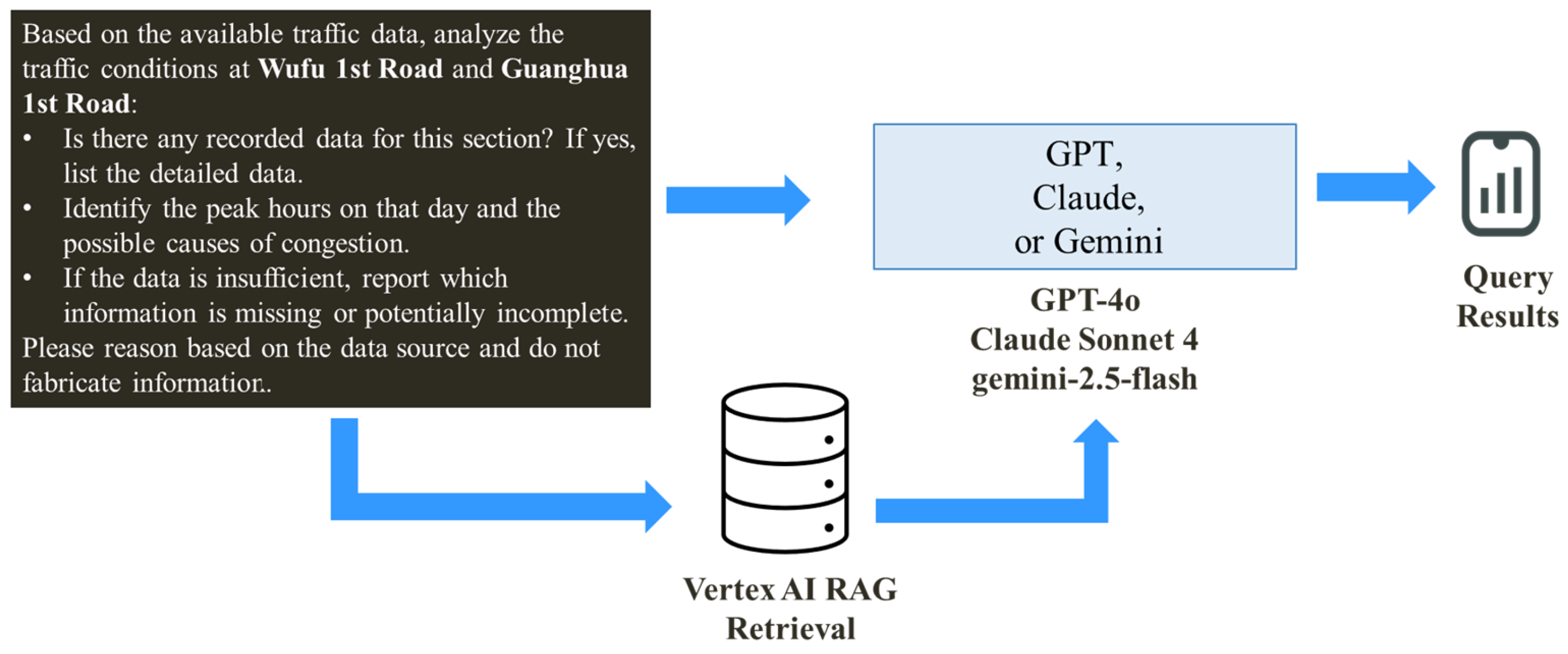 | Data Gaps Noted | Mentions some limitations (e.g., lack of location details) | Lists comprehensively (time, speed, signals, capacity, weather, etc.) | Points out missing data such as “vehicle speed, flow rate.” |