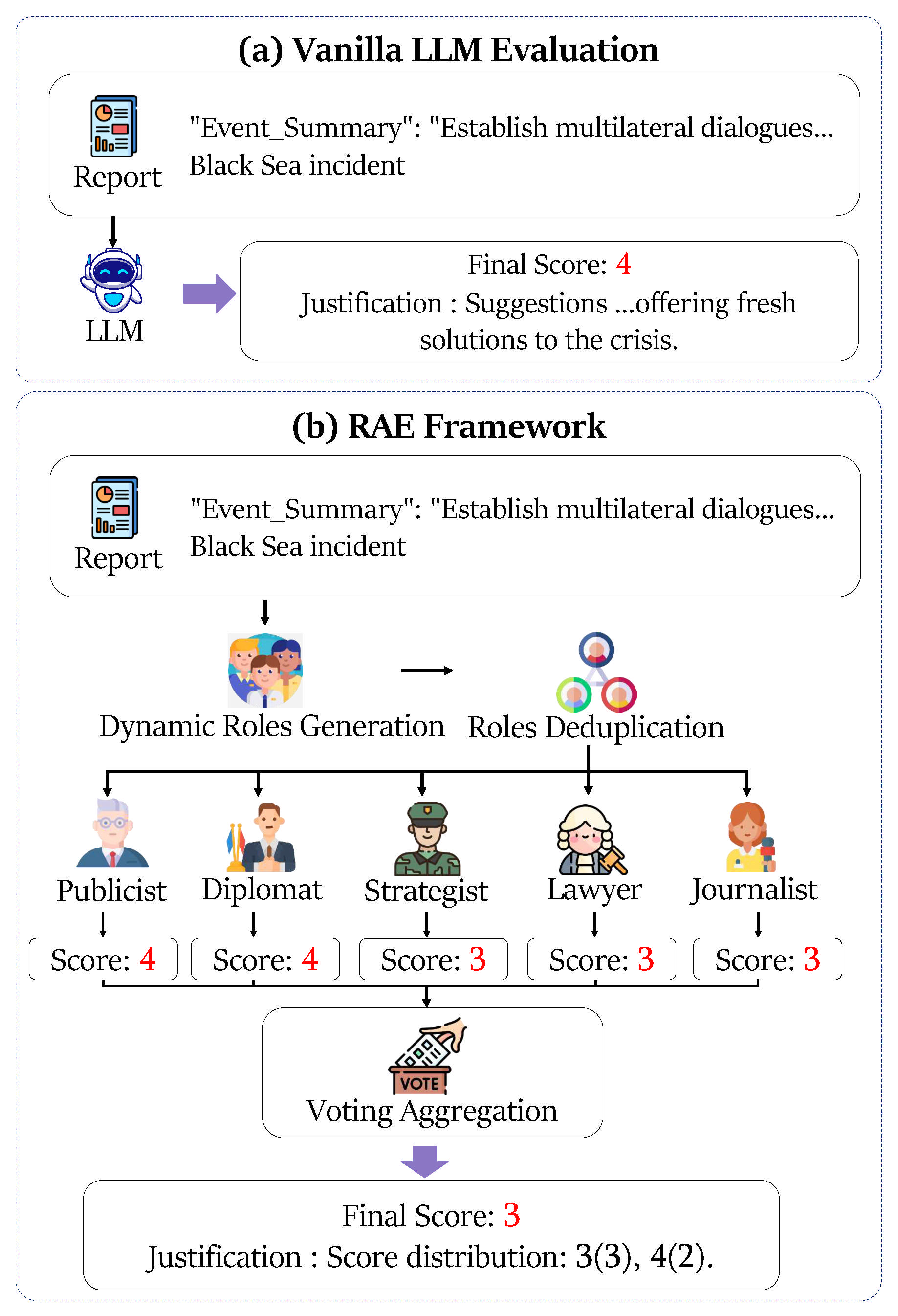 APA StyleYu, J., Xu, Y., Feng, Y., Zhu, L., Shen, H., & Shi, L. (2026). RAE: A Role-Based Adaptive Framework for Evaluating Automatically Generated Public Opinion Reports. Electronics, 15(2), 380. https://doi.org/10.3390/electronics15020380